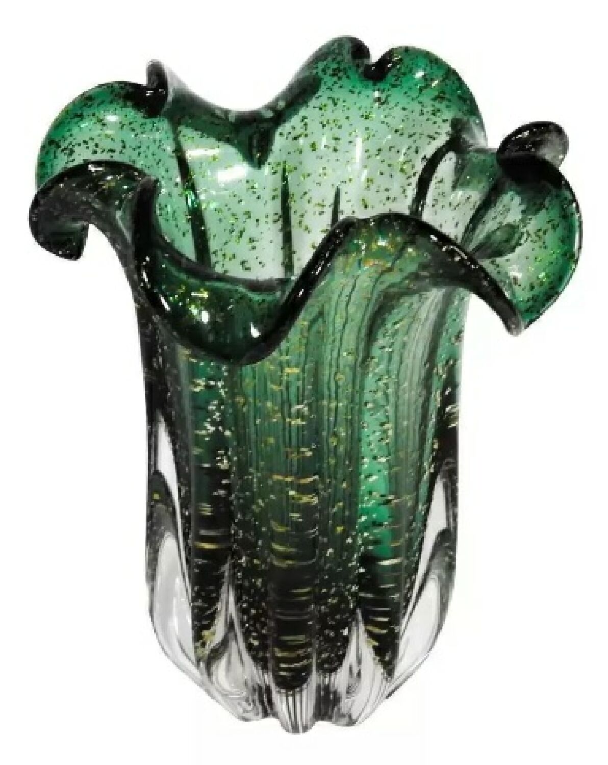 534237 - VASO DECOR EM VIDRO - VERDE E DOURADO