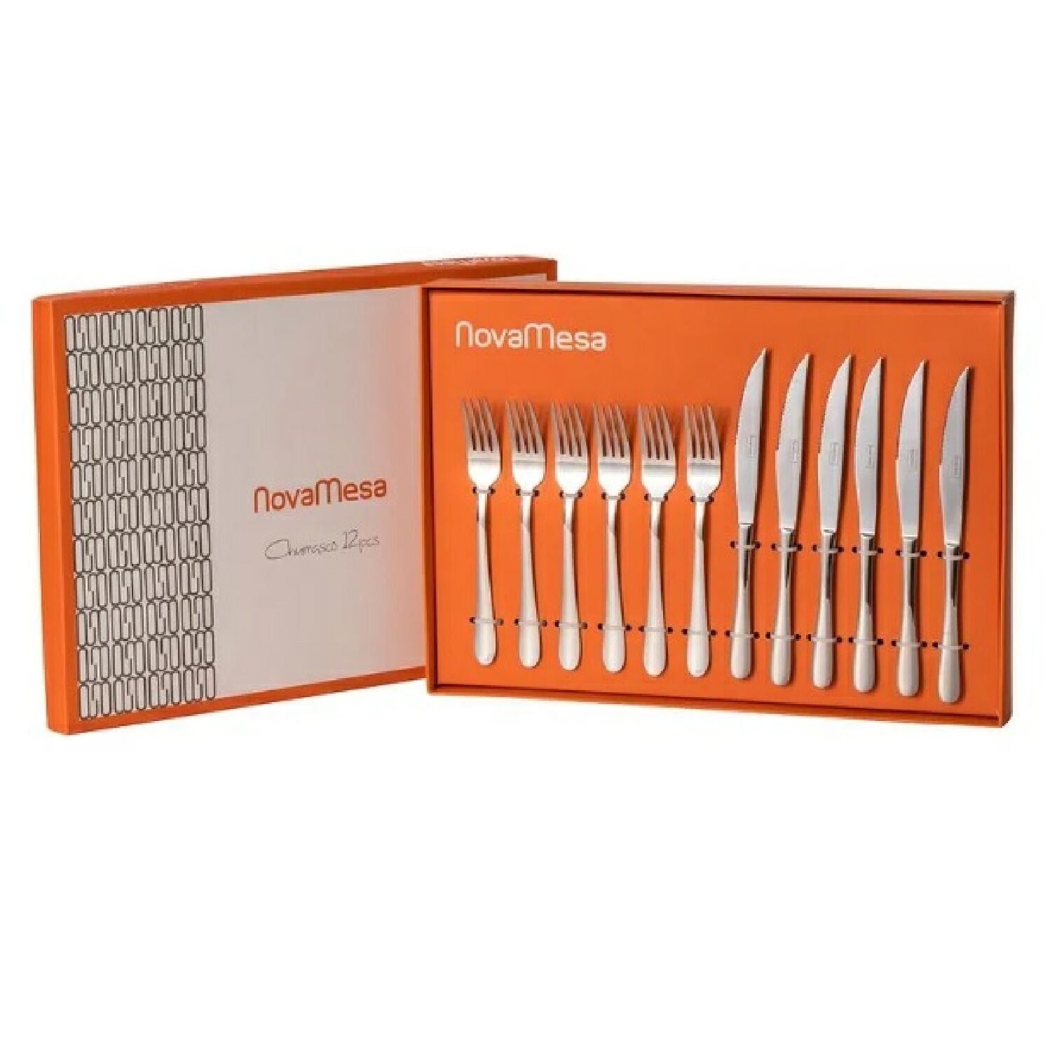 O Jogo de Churrasco 12 peças New English Inox tem presença marcante, dá um toque de classe e requinte às ocasiões formais, é indispensável para abrilhantar sua mesa.