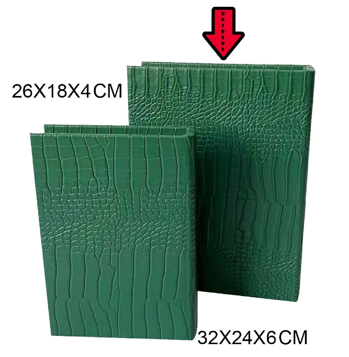 CAIXA LIVRO DECORATIVO EM MDF DETALHE PU EM CROCO - COR: VERDE - TAMANHO: 32X24X6CM.