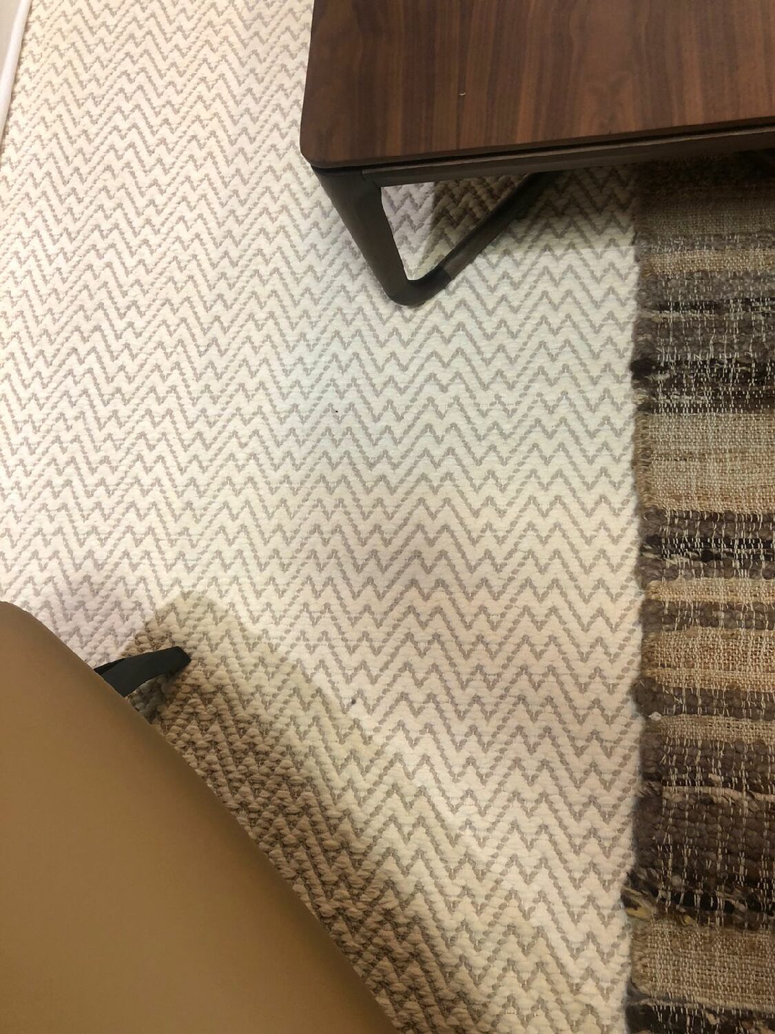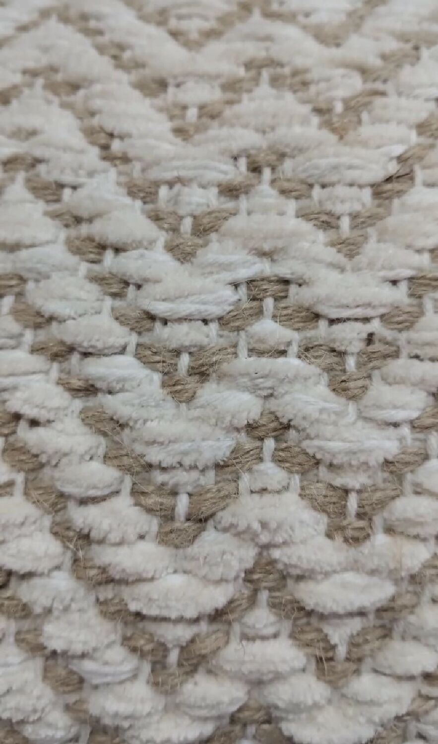 - O tapete é feito artesanalmente à mão com materiais de altíssima qualidade, tendo na sua composição juta, chenile cru e algodão cru.