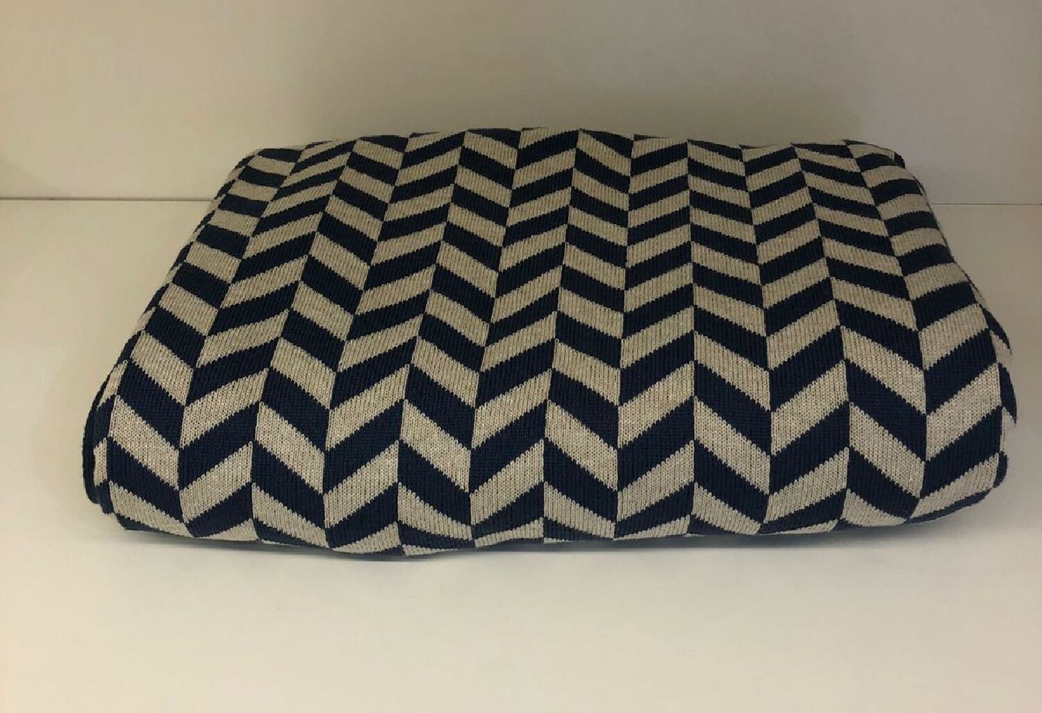 MANTA EM TRICOT - MEDIDAS: 130X175CM - CHEVRON/PRUSSIANO/NUVEM