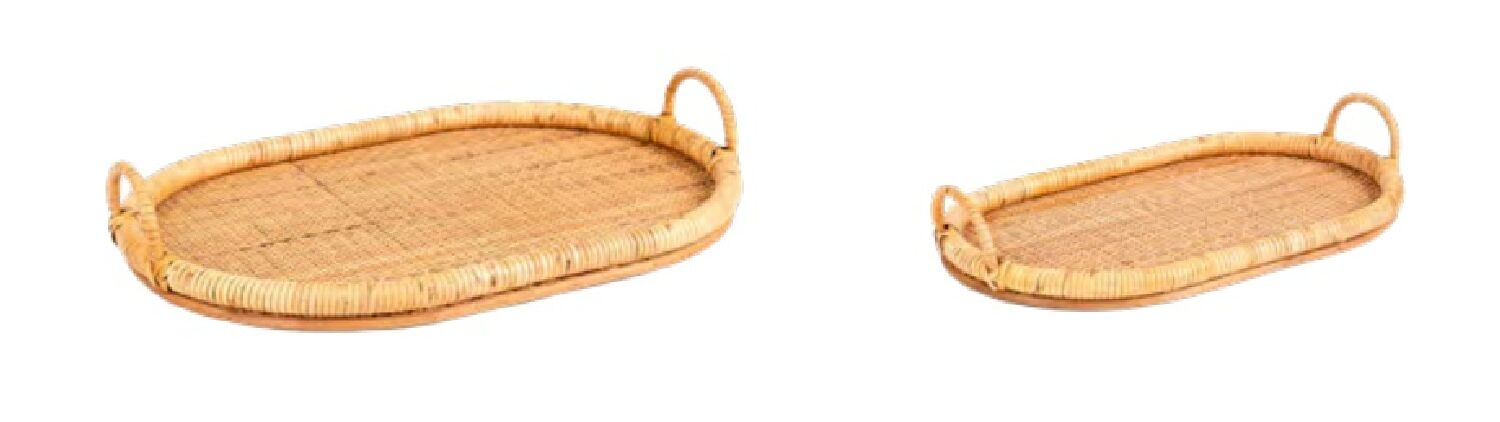 JOGO COM 2 BANDEJAS OVAIS EM RATTAN