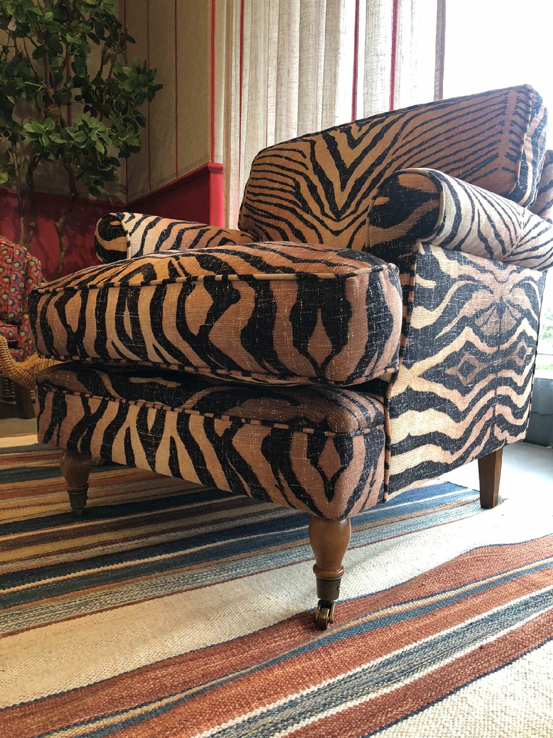 O Tecido Tigre, da coleção Gardens da Entreposto, possui uma estampa ousada de tigres. Ideal para decoração de interiores e estofados, este tecido traz um toque de selvageria e dinamismo, transformando qualquer ambiente com seu design audacioso e detalhado.