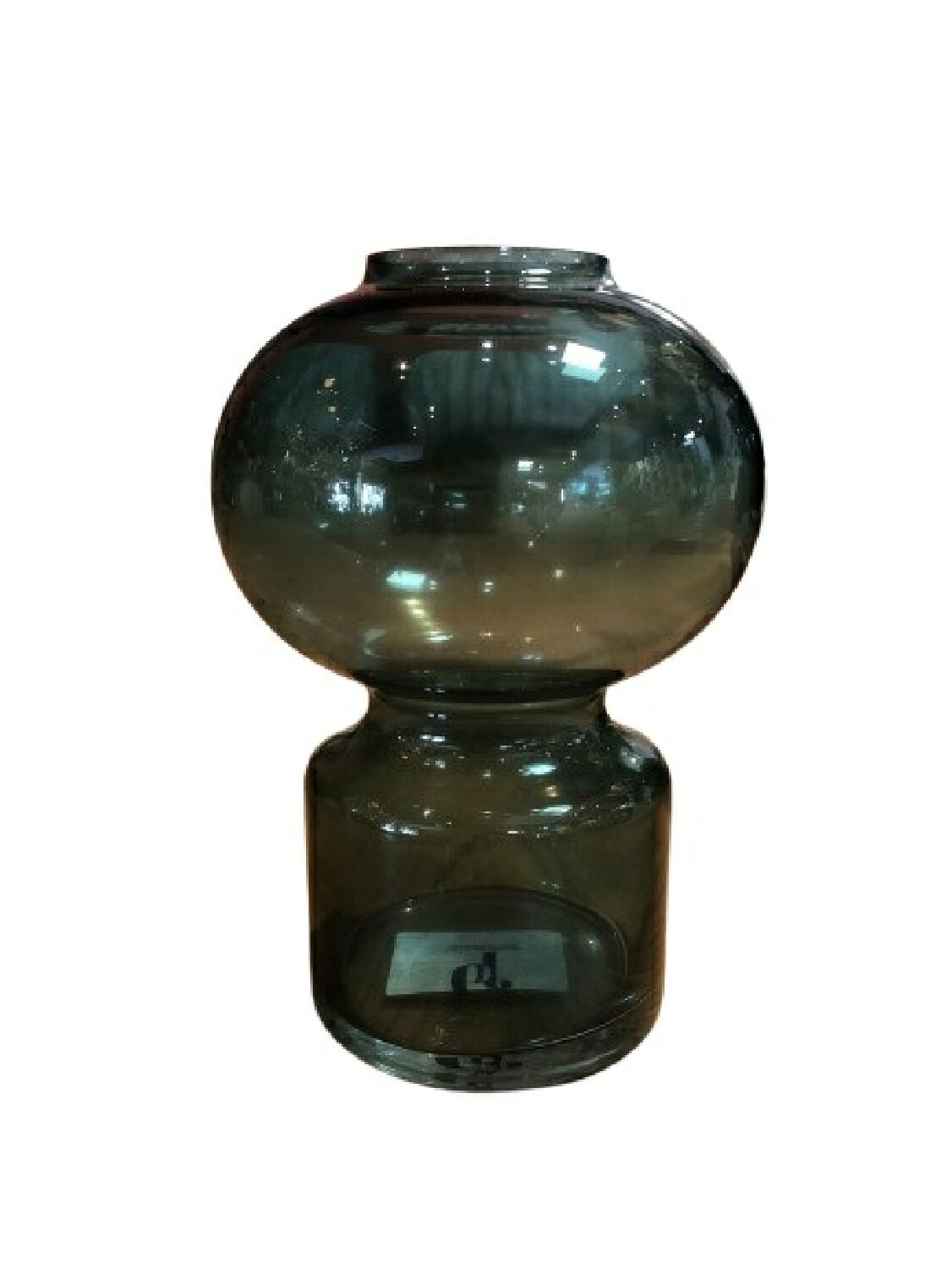 Vaso em vidro fino, colorido e soprado, formato cilíndrico, com design contemporâneo no tom verde.