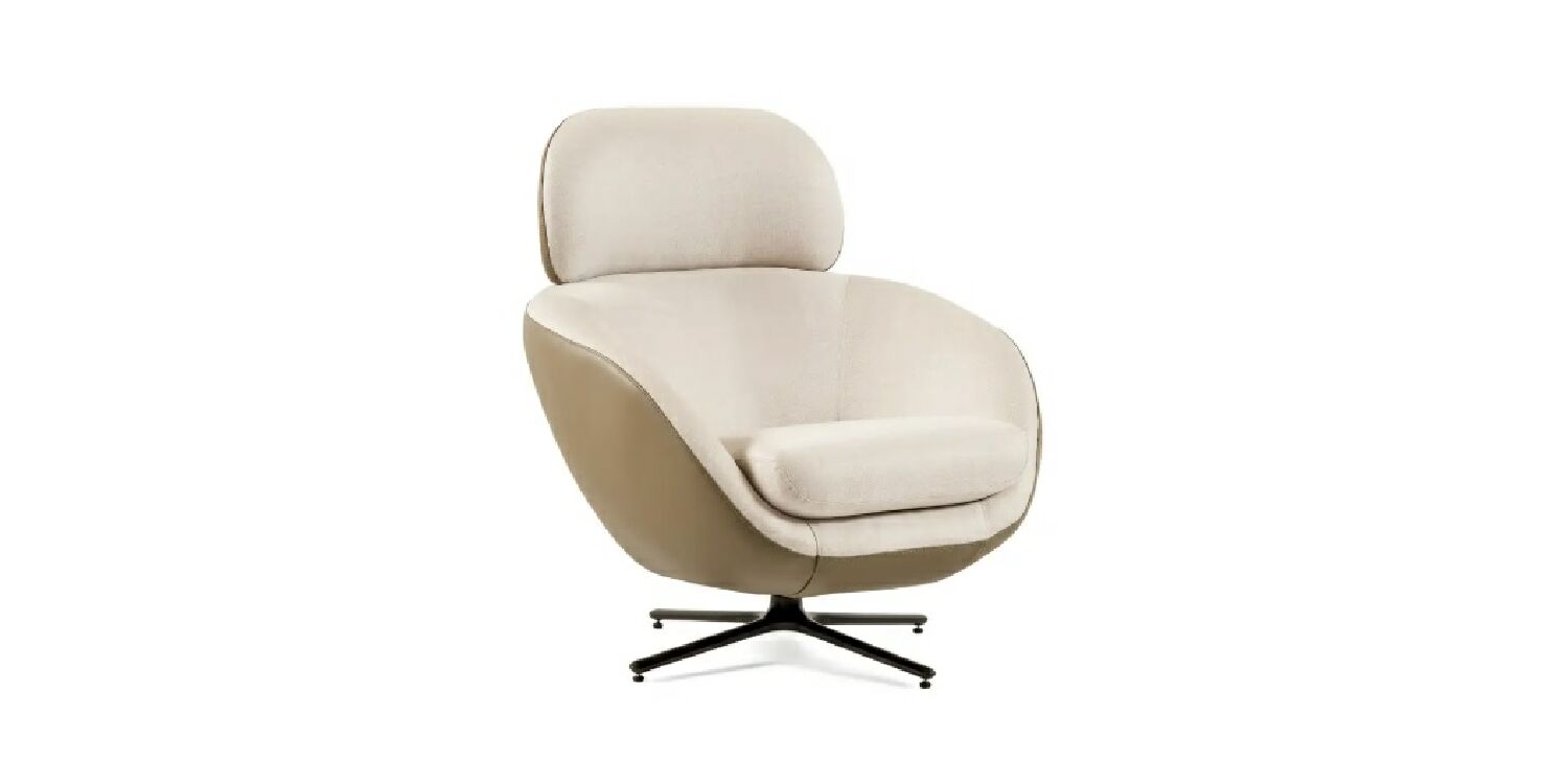 A Poltrona Muntênia é uma cadeira giratória com design moderno e conforto profundo.