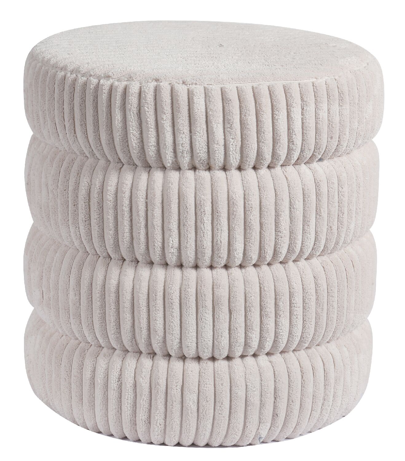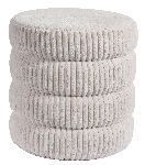 PUFF EM MDF REDONDO REVESTIDO EM VELUDO OFF WHITE