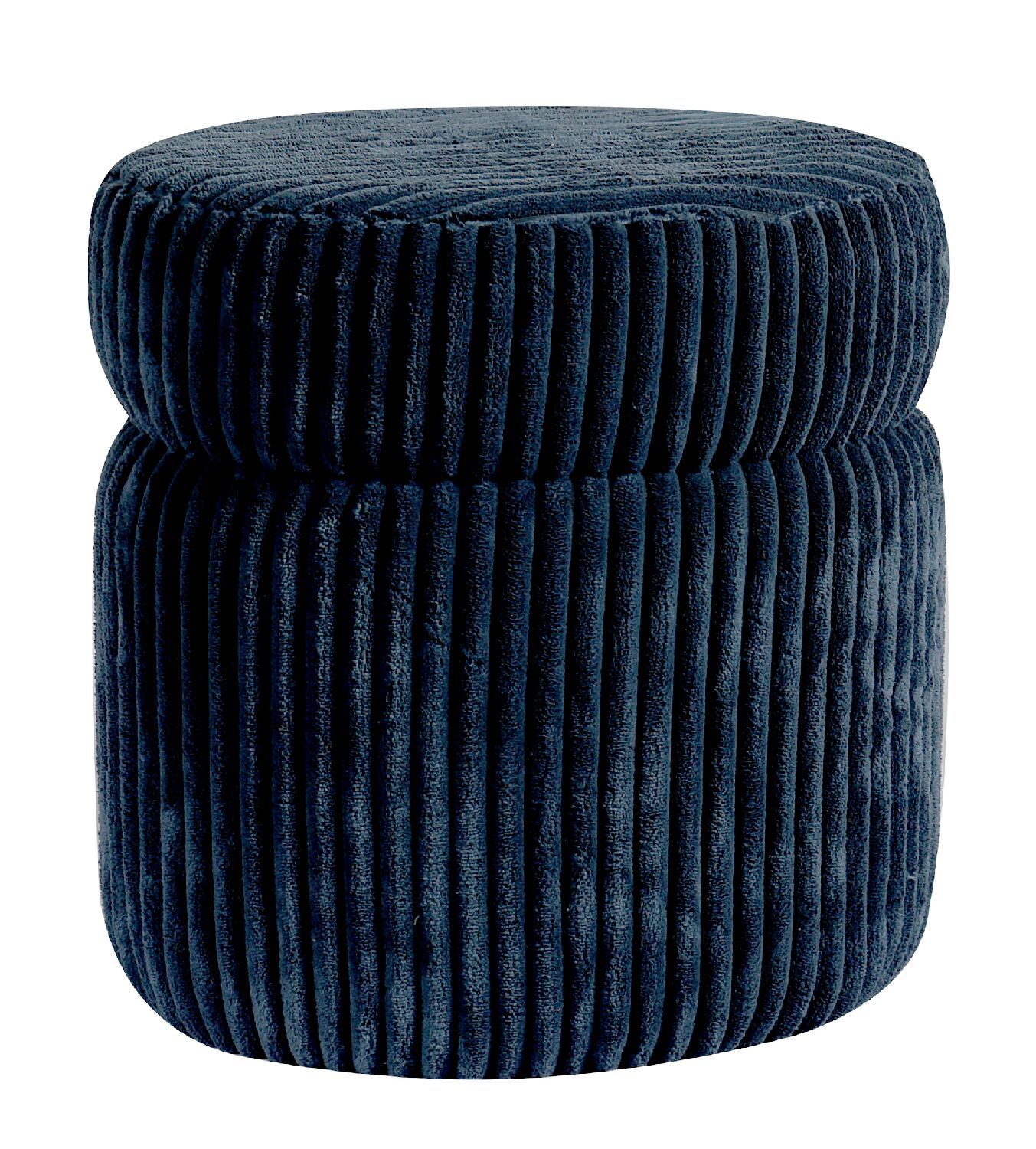 PUFF EM MDF REDONDO REVESTIDO EM VELUDO AZUL