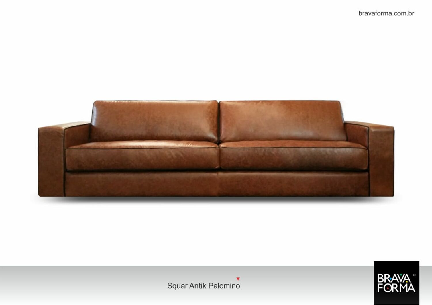 O sofá é da marca Brava Forma em couro em tom de telha.