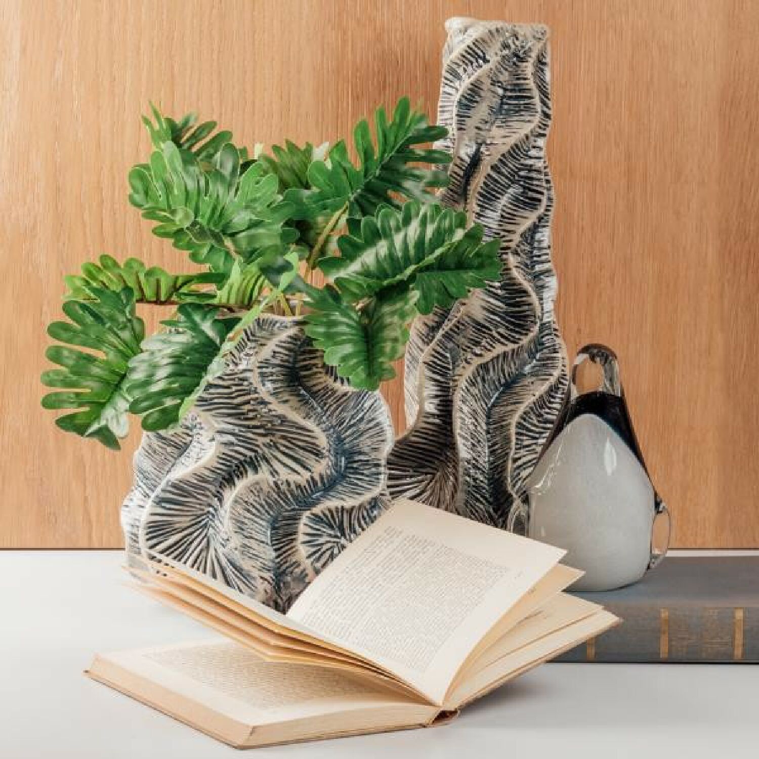 A linha importada "Palmier", de cerâmica artesanal é composta por vasos, cachepots, pratos, diversos tipos de pinhas, entre outros objetos que podem ser usadas no décor e como na mesa. Feita à mão, essa linha conta com detalhes encantadores como pequenas folhas e pétalas, resultado de um artesanato maravilhoso.