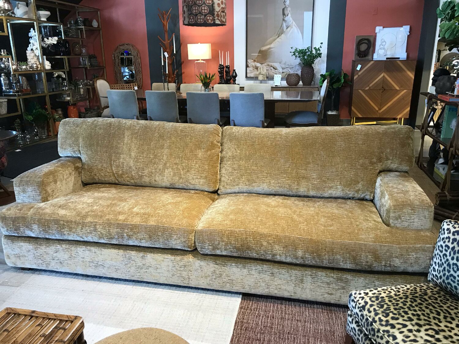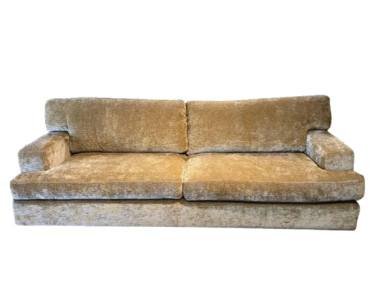 Sofá Lorenzo 4 lugares, estofado em tecido Veludo Camel.