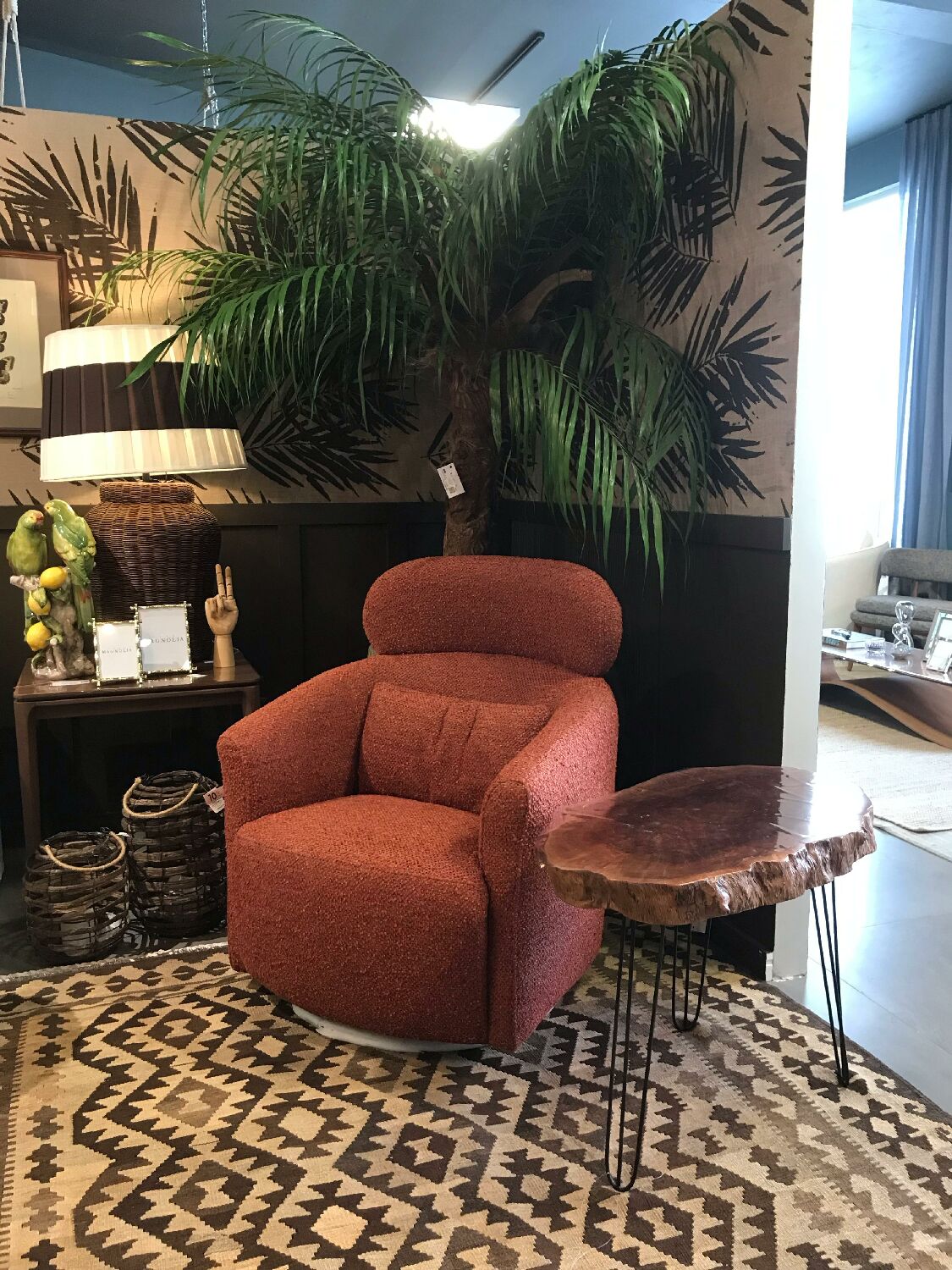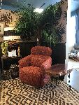 Poltrona Ciao estofada em tecido Bouclê Rusty.