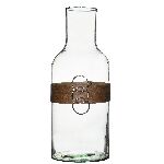 Design atemporal, o garrafão de vidro tem bordas lisas e polidas, com detalhes em couro e metal, pode ser utilizado como elemento decorativo em diversos ambientes.