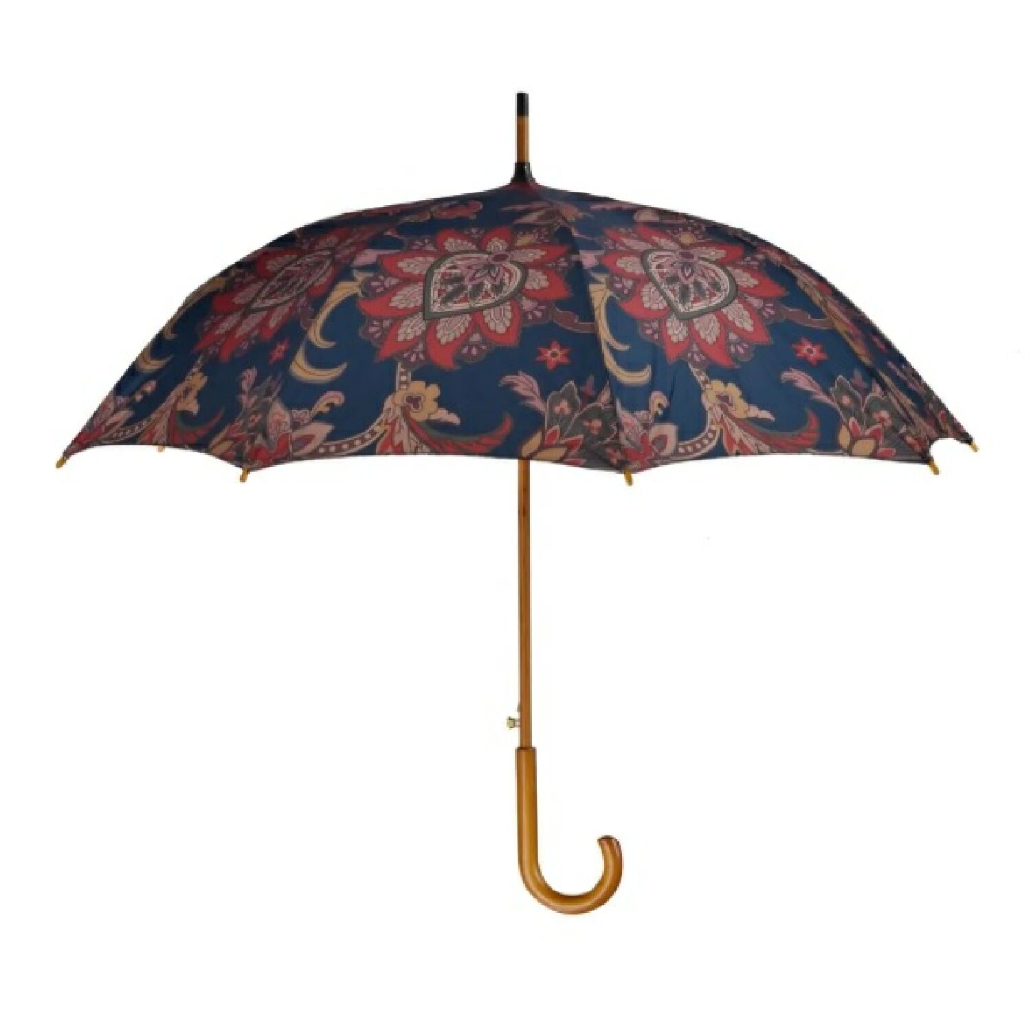 O Guarda-Chuva Paisley Blue combina elegante e funcionalidade em um design sofisticado. Sua estrutura de madeira e varetas de aço canelado garantem resistência, enquanto o tecido impermeável na estampa exclusiva Paisley Blue fornece proteção eficiente contra a chuva. Com cabo de madeira e acionamento automático, é um acessório prático e charmoso para qualquer ocasião.