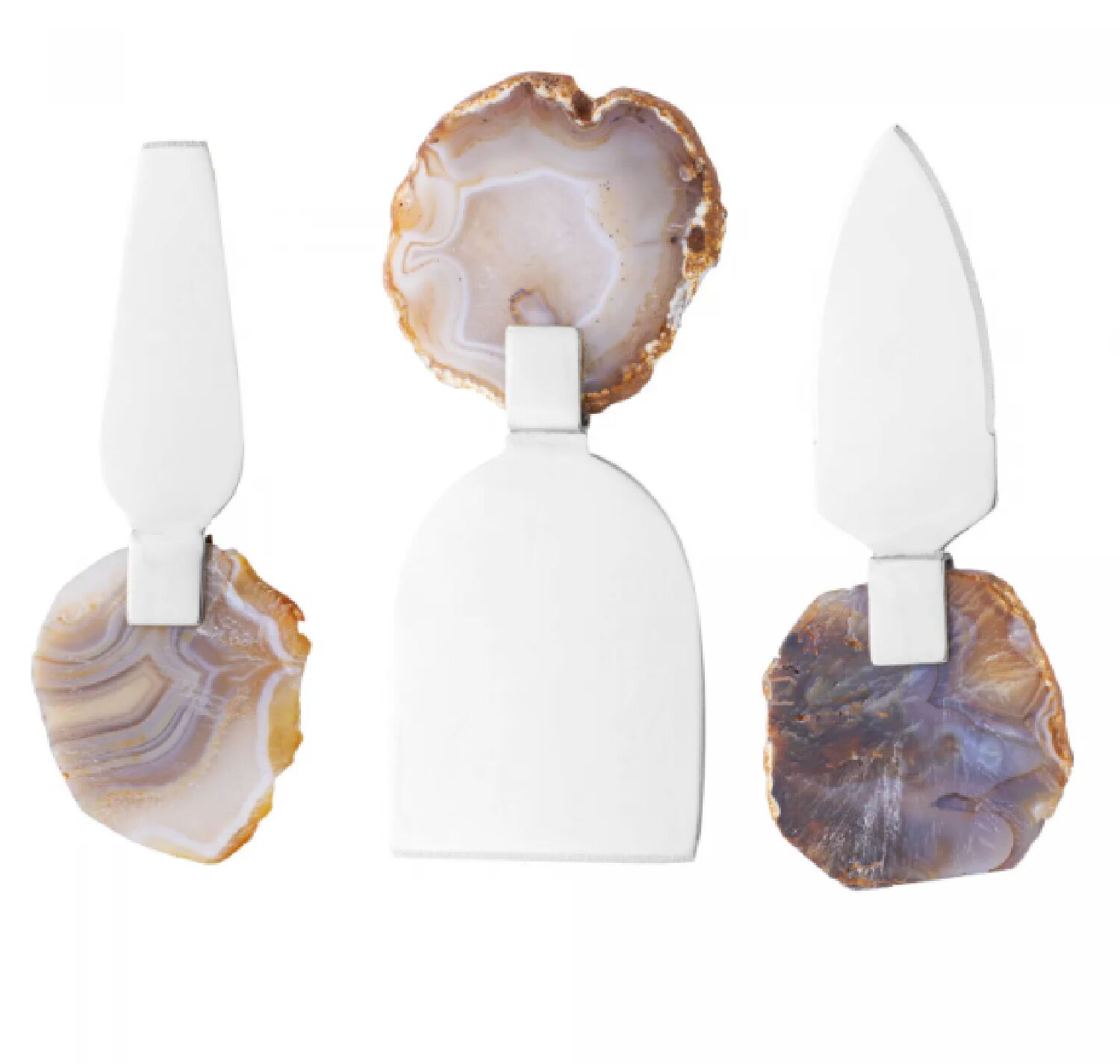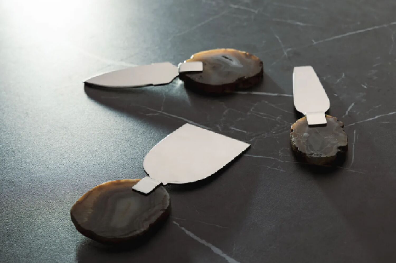 Estas facas apresentam um design elegante e contemporâneo, combinando a durabilidade do aço inoxidável com a beleza natural da ágata. Cada faca é uma obra-prima de artesanato, adicionando um toque de sofisticação à sua mesa de queijos.
