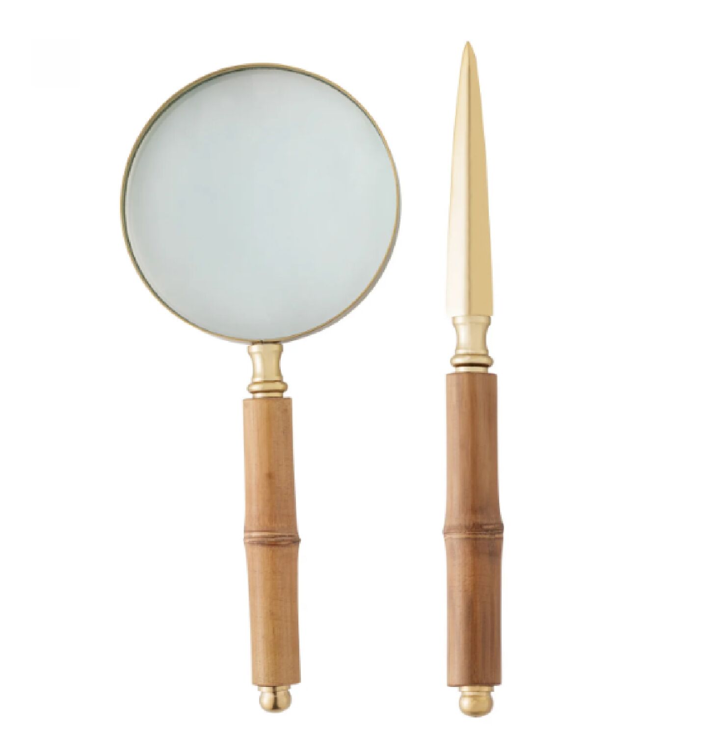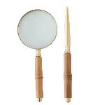 Conjunto Abridor de Carta e Lupa de Aço Inox com Cabo de Bambu Dourado