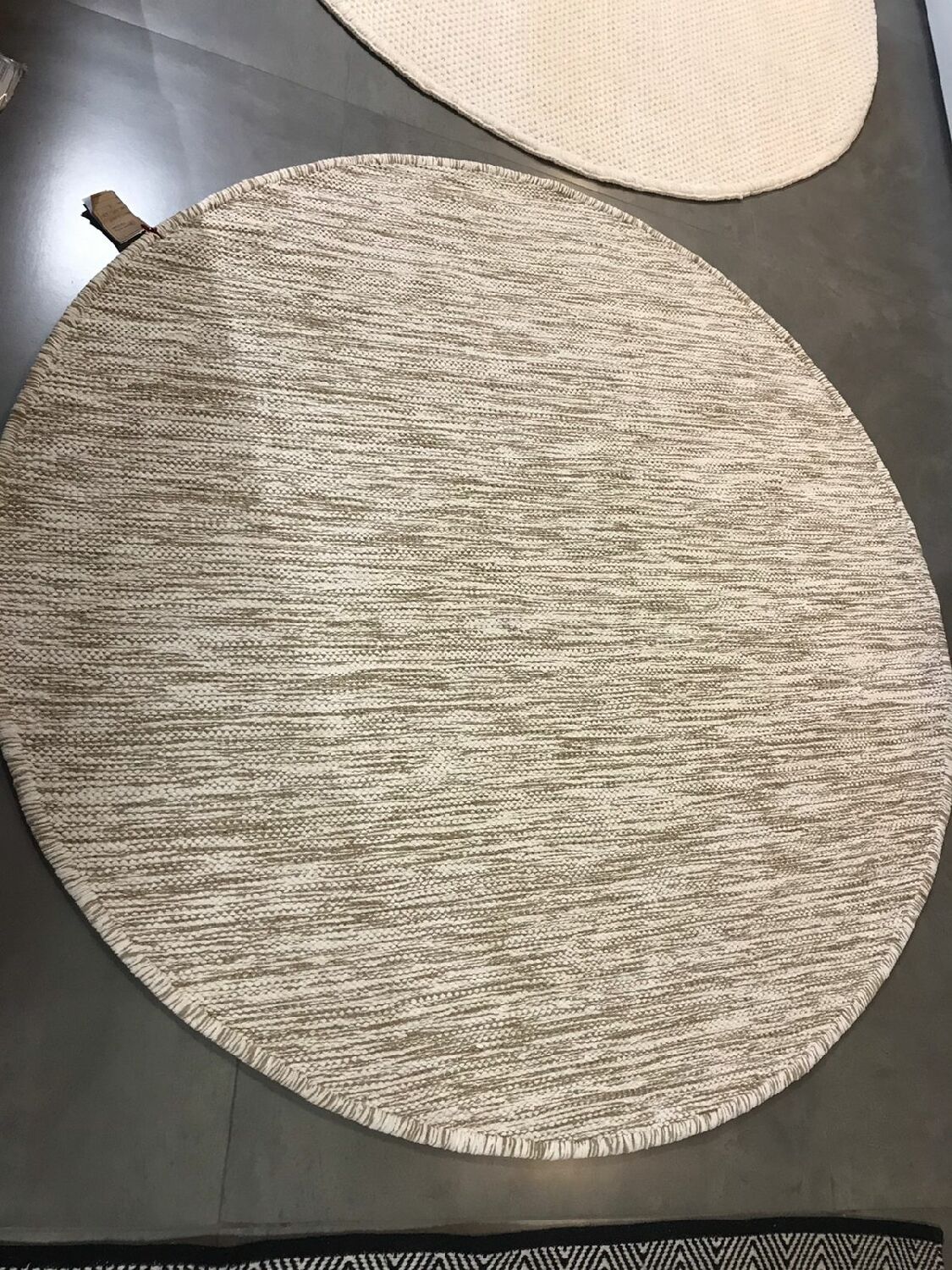 Tapete Redondo Bege Mesclado - Efeito Riscado em Algodão Natural
