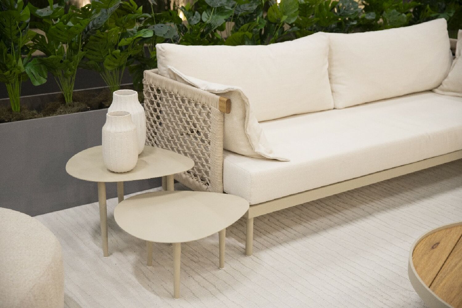 MESA LATERAL LUCCI P NA COR BEGE ESCURO E TAMPO EM ALUMÍNIO LISO