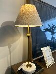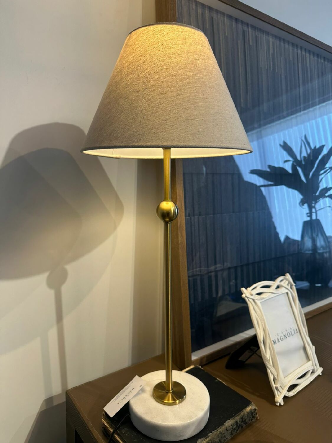 Os abajures dão um toque especial para a decoração do seu ambiente. Esta peça traz uma elegante composição com metal dourado, mármore e tecido, que marcará forte presença em seu ambiente e iluminação.