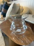 Este é um vaso decorativo em vidro, com design contemporâneo e forma orgânica. Sua estrutura apresenta uma base mais estreita que se alarga suavemente até a boca, formando uma silhueta arredondada e elegante.
