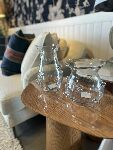 A transparência do vidro realça a leveza visual, tornando-o versátil para mesas de centro, aparadores ou prateleiras decorativas.