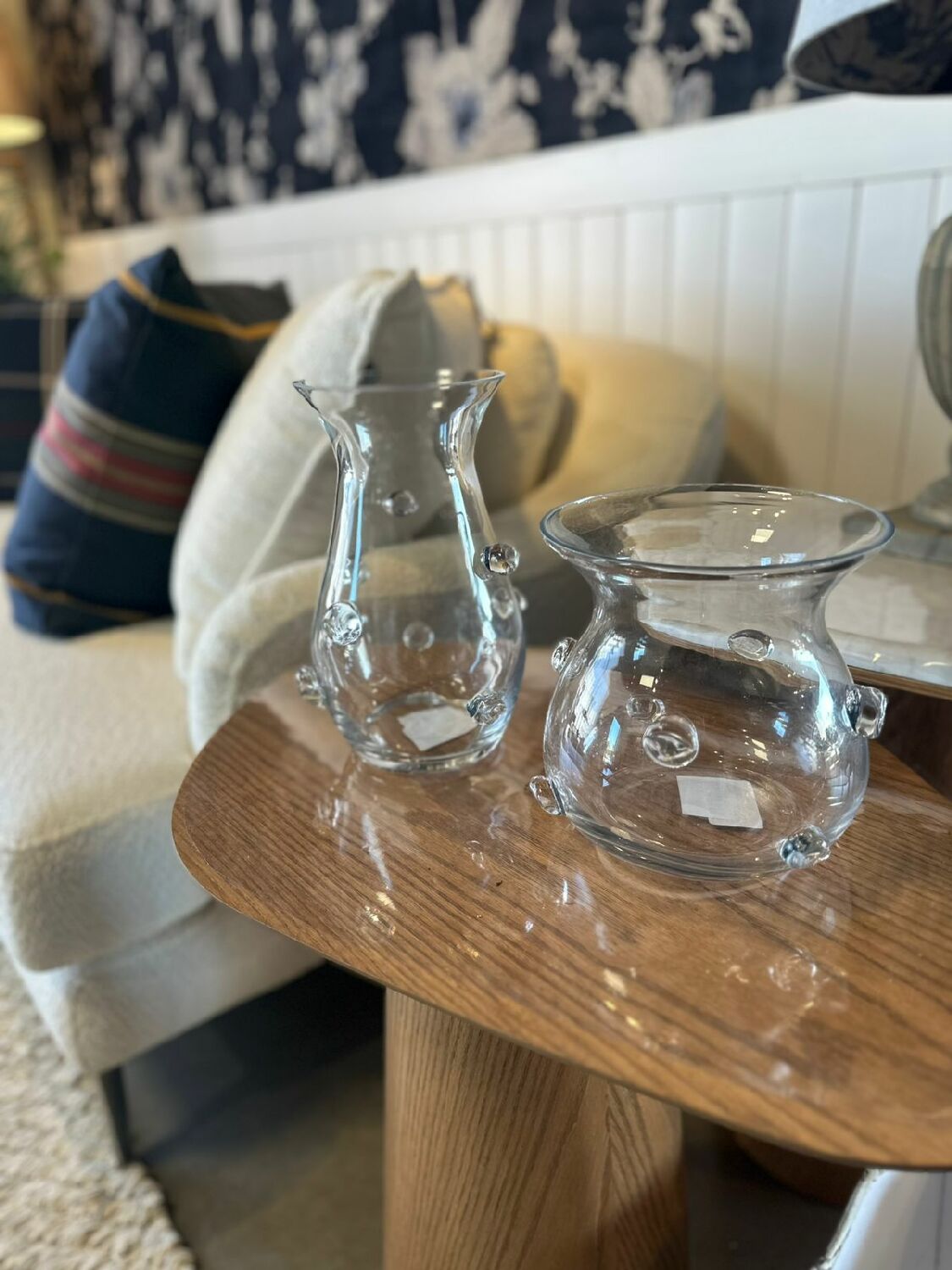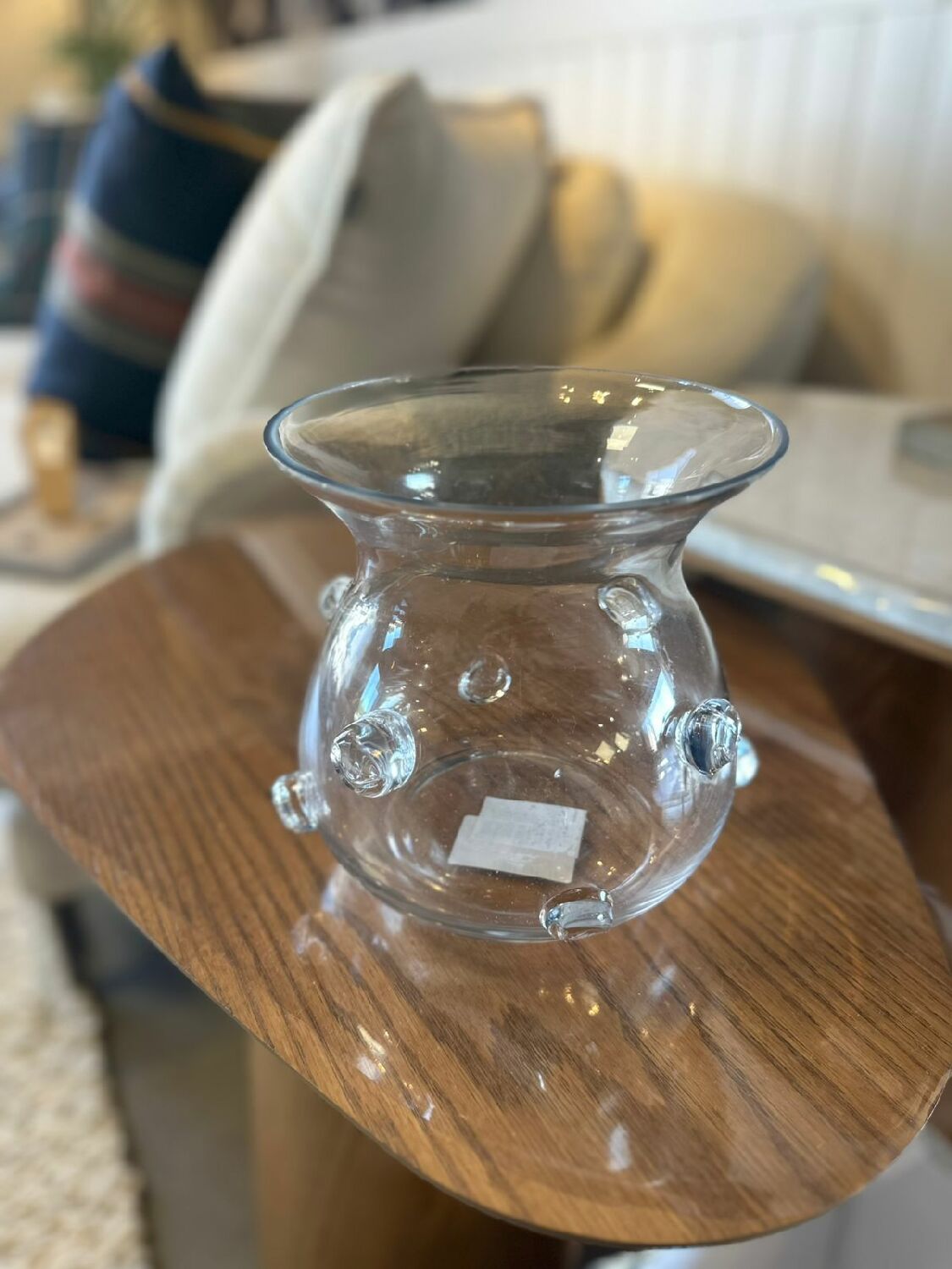 O diferencial do design está nos detalhes em relevo distribuídos ao redor do corpo do vaso pequenas esferas de vidro aplicadas manualmente, que acrescentam textura, personalidade e sofisticação à peça.