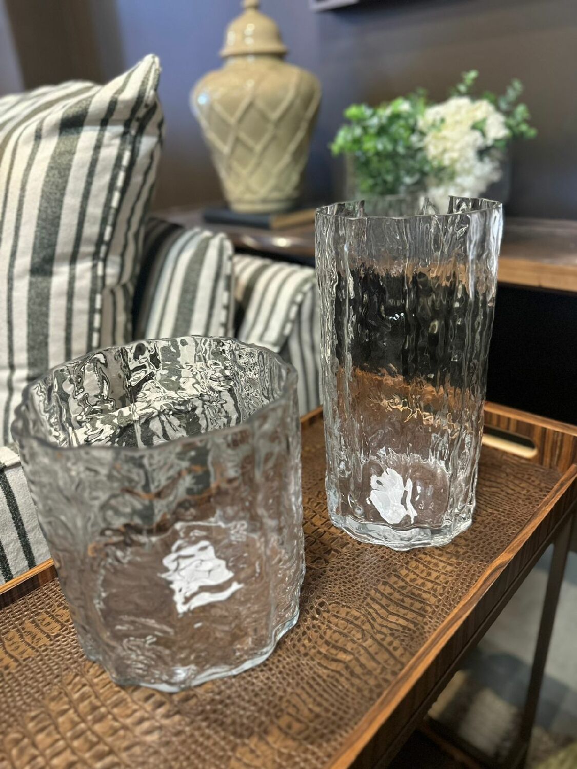 Sua transparência e textura tornam o vaso versátil, combinando bem com diferentes estilos de decoração.