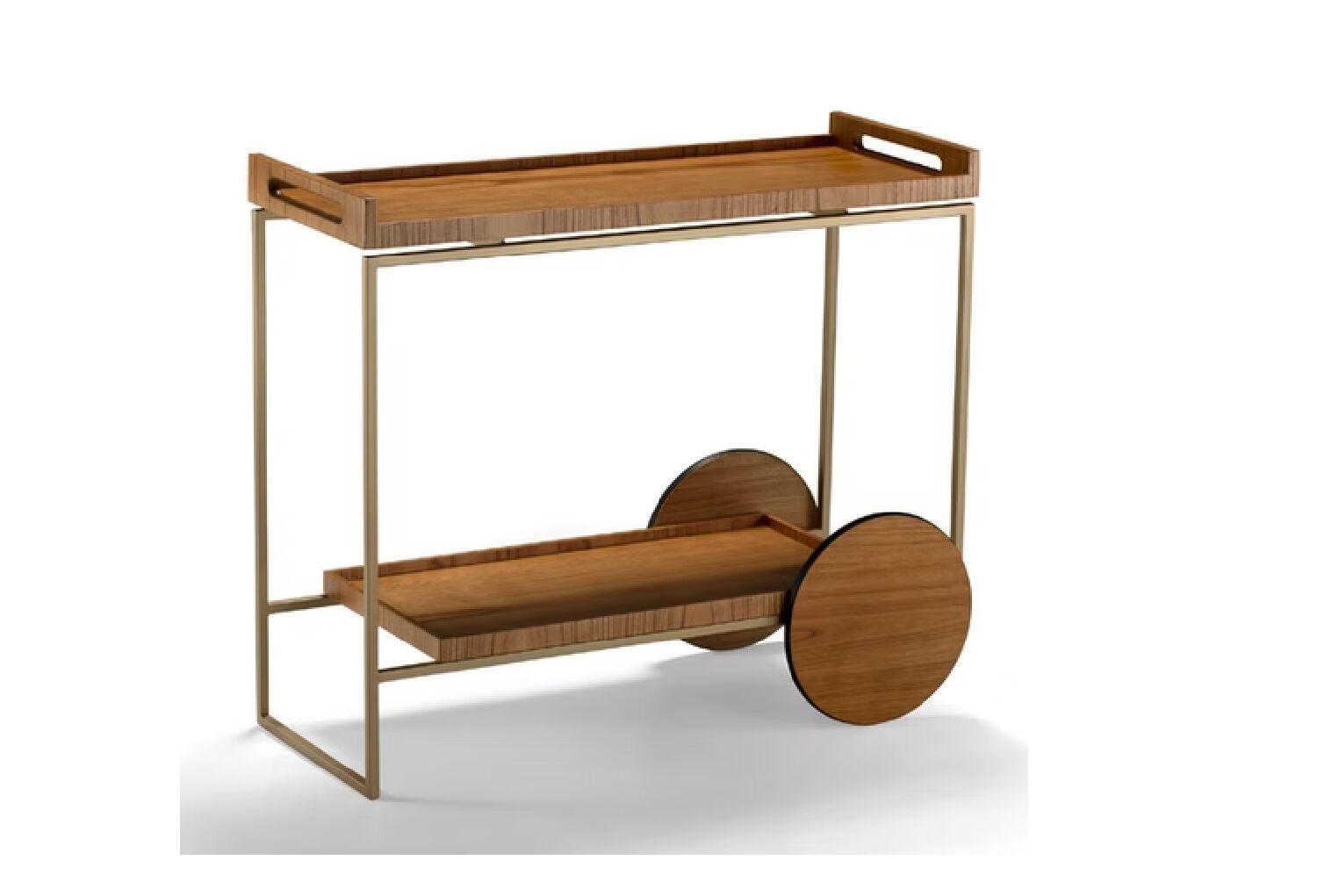 Assinado por um designer, o carrinho bar Cava possui formas geométricas retangulares que definem seu desenho em linhas retas.