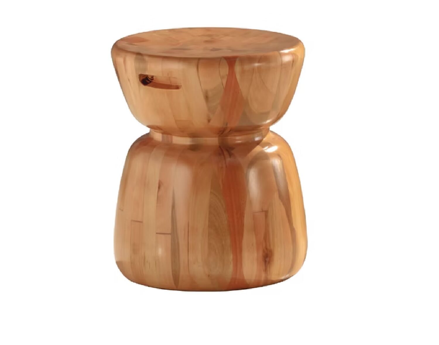 Produzido em madeira maciça, possui acabamento polido e envernizado, evidenciando os veios naturais e a coloração rica do material.
