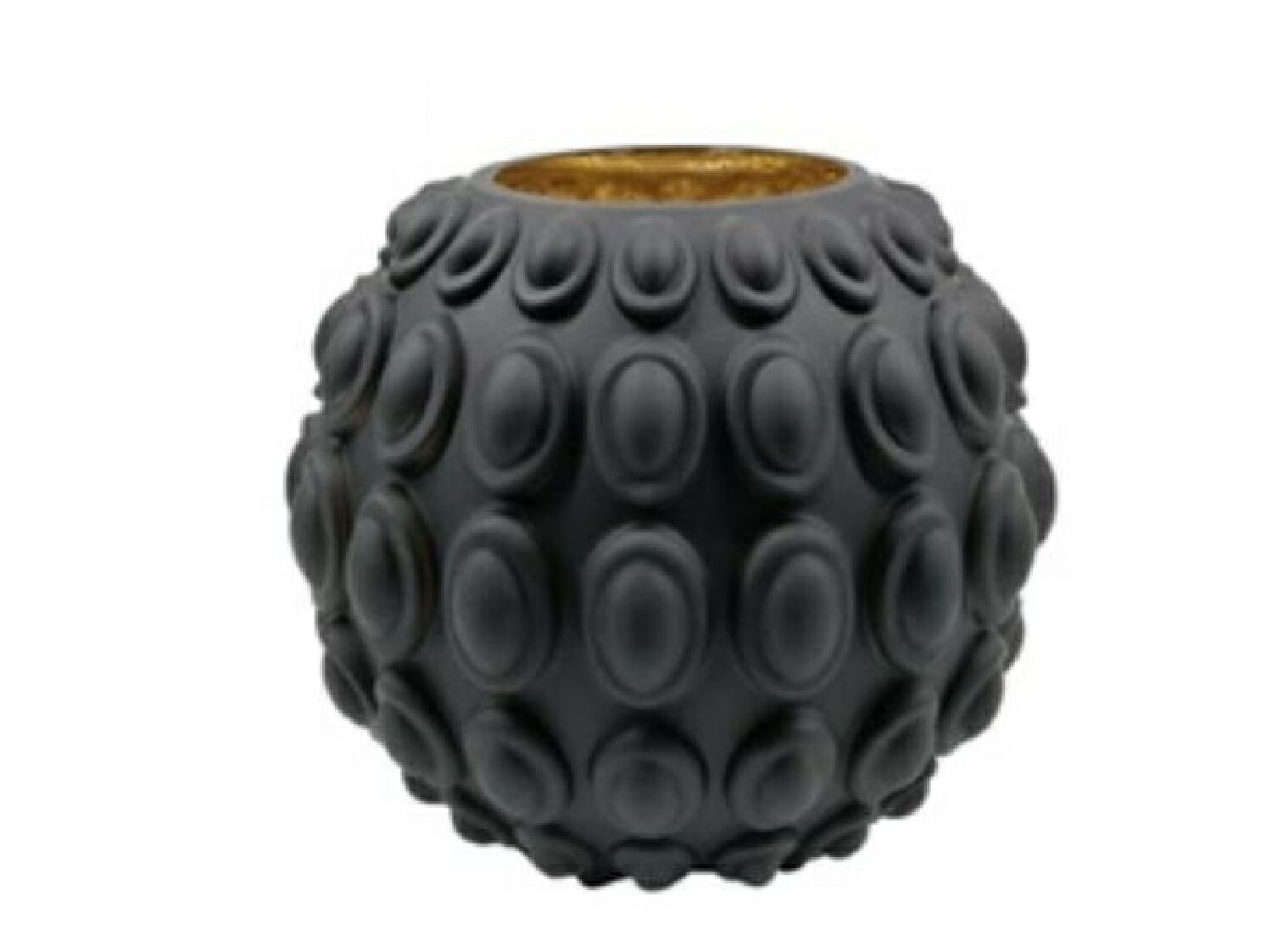 Com design sofisticado e marcante, este vaso de vidro é uma peça que alia modernidade à elegância. Seu acabamento em vidro preto fosco com textura em relevo de círculos ovais confere um visual contemporâneo e imponente, ideal para composições decorativas com personalidade.