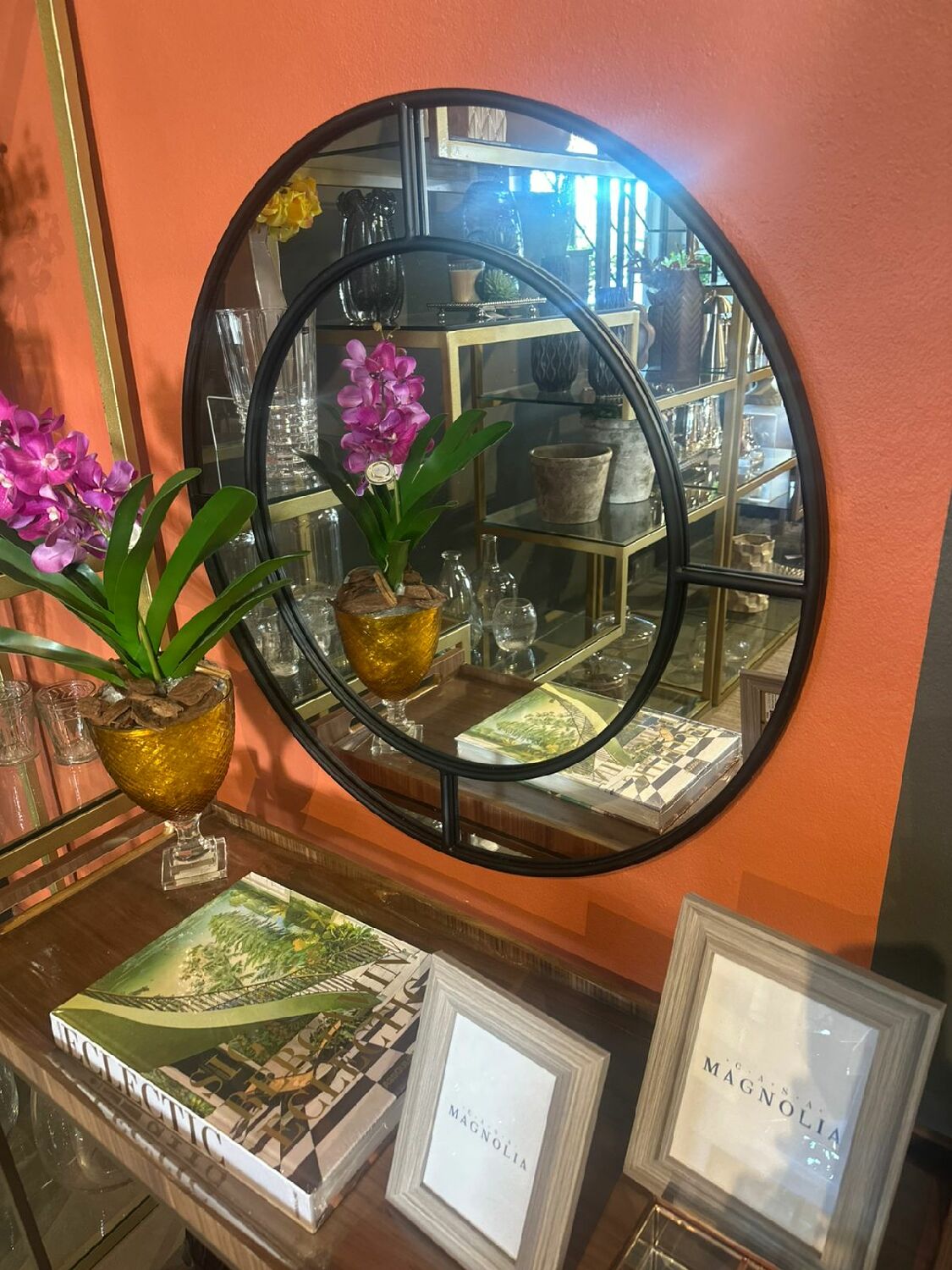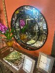 Espelho Decorativo Redondo com Moldura em Metal Preto.