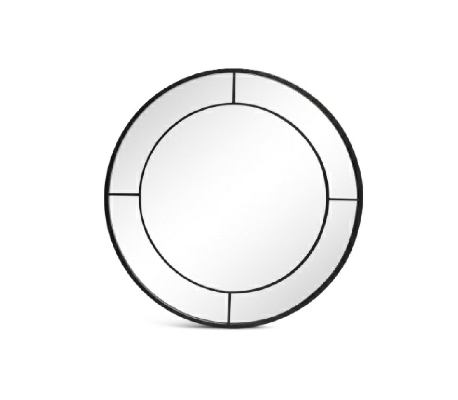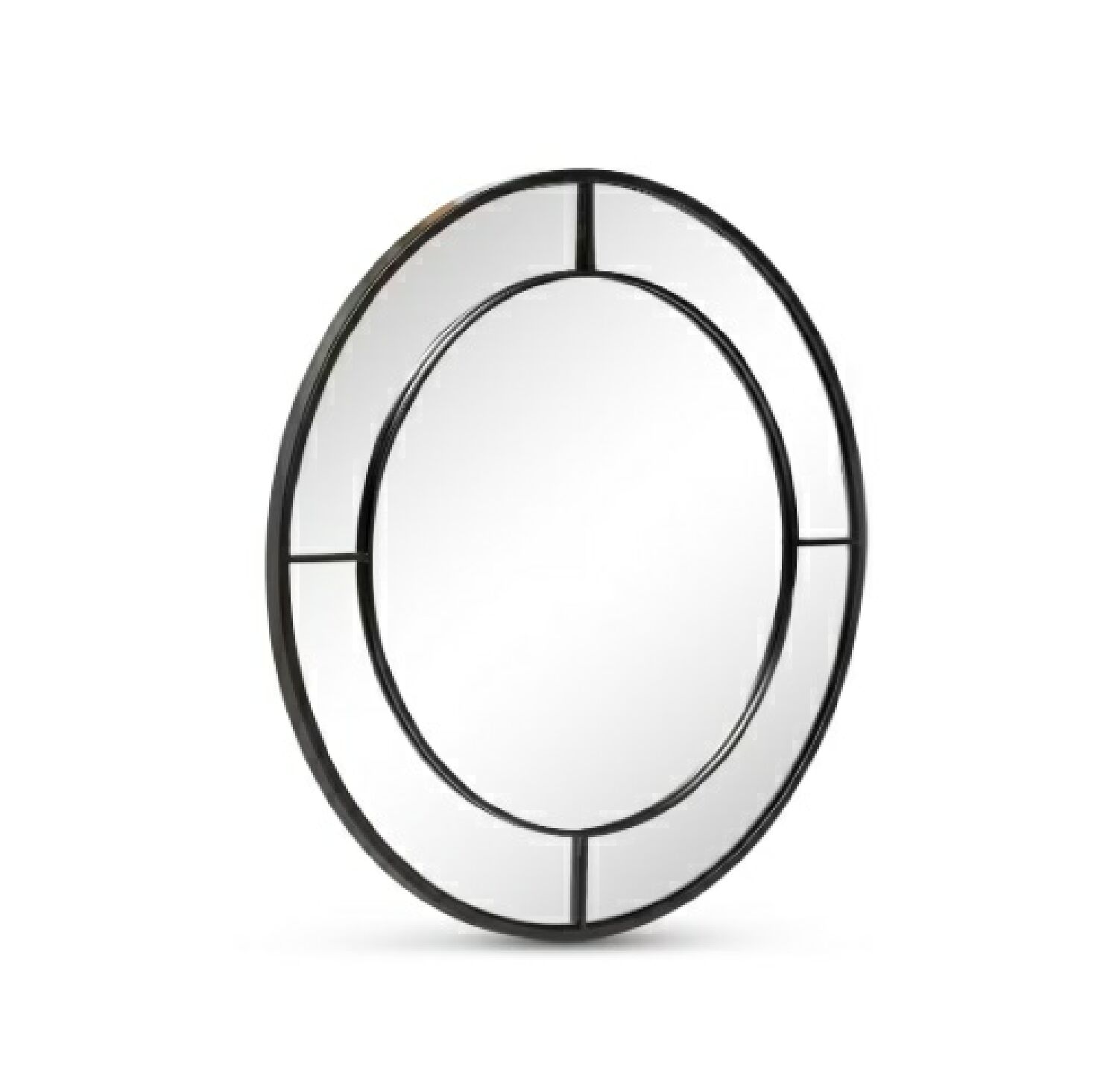 Com design contemporâneo e acabamento sofisticado, este espelho redondo é ideal para valorizar qualquer ambiente. A moldura em metal preto com divisões geométricas confere um visual moderno e elegante, perfeito para salas, halls, quartos ou lavabos.