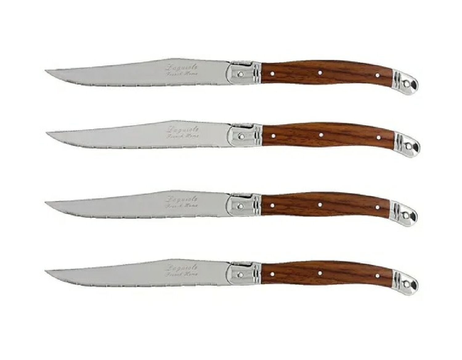 Elegância e funcionalidade à mesa. O conjunto de facas estilo Laguiole é ideal para quem valoriza qualidade e sofisticação nos momentos à mesa. Com lâminas em aço inox de alta durabilidade e cabos em madeira com acabamento ergonômico, as peças unem charme rústico e desempenho preciso no corte. Perfeito para servir carnes com estilo.