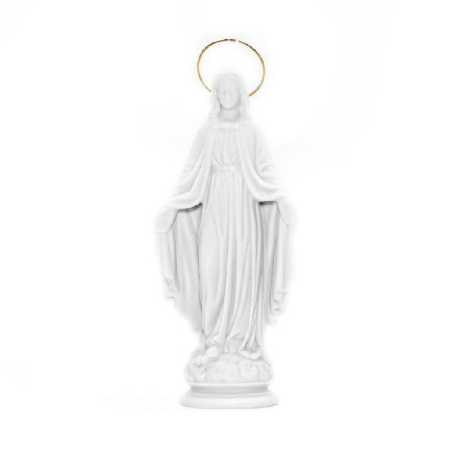 Esta belíssima estátua representa Nossa Senhora das Graças, uma das devoções mais queridas da fé católica. Produzida em resina branca de alta qualidade, a imagem transmite serenidade, pureza e espiritualidade, sendo ideal para espaços de oração, altares ou como presente devocional.