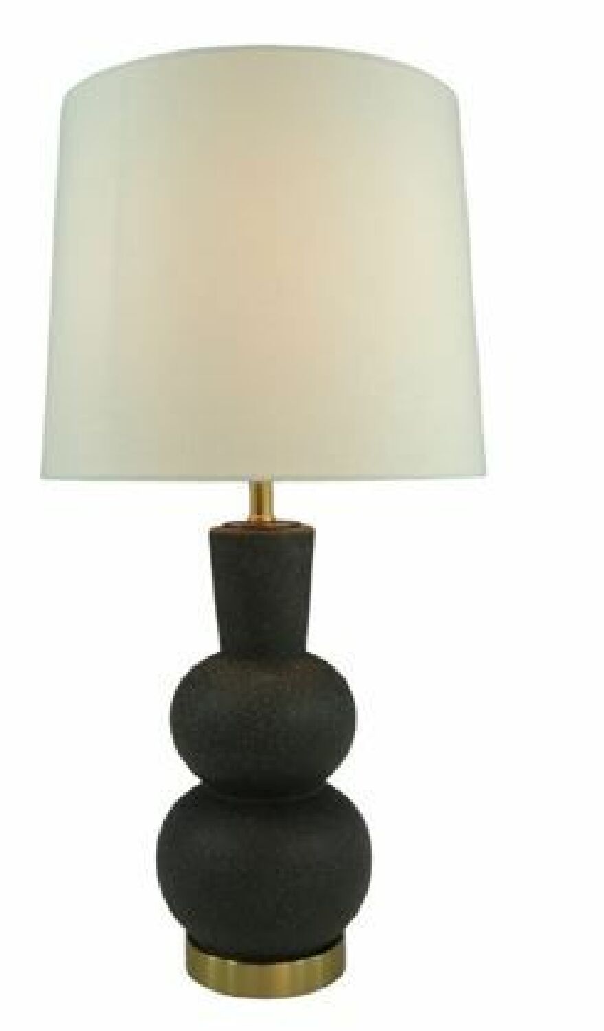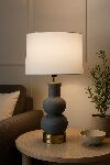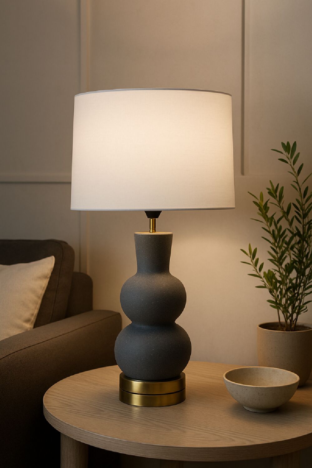 Abajur decorativo com design contemporâneo e estética moderna e refinada, ideal para ambientes sofisticados. O corpo é produzido em cerâmica de alta qualidade, com acabamento texturizado que confere profundidade visual e um toque artesanal à composição.