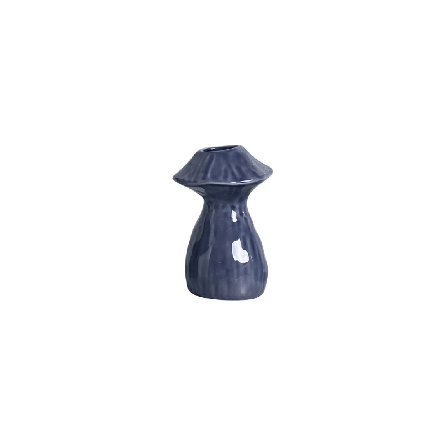 O vaso decorativo Cogumelo Alba em cerâmica é uma peça charmosa e original que combina design contemporâneo com um toque lúdico inspirado na natureza. Com acabamento esmaltado brilhante na cor azul profundo, este modelo pequeno (PQ) destaca-se pela sua forma semelhante a um cogumelo, com linhas suaves e arredondadas que conferem um ar artístico e moderno.