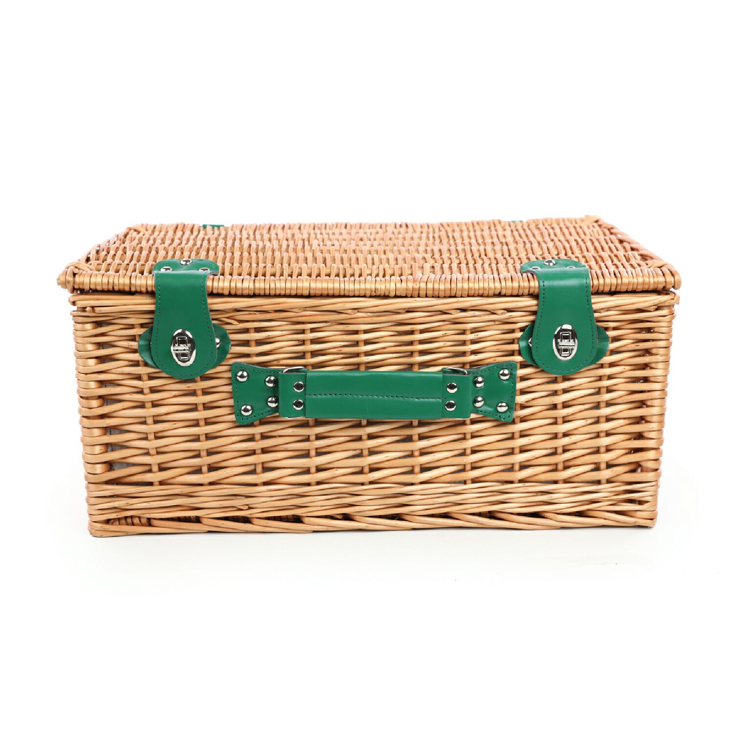 - Design Clássico em Vime Natural: Estrutura resistente e acabamento refinado, com alças e fechos em couro ecológico verde;