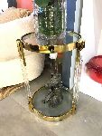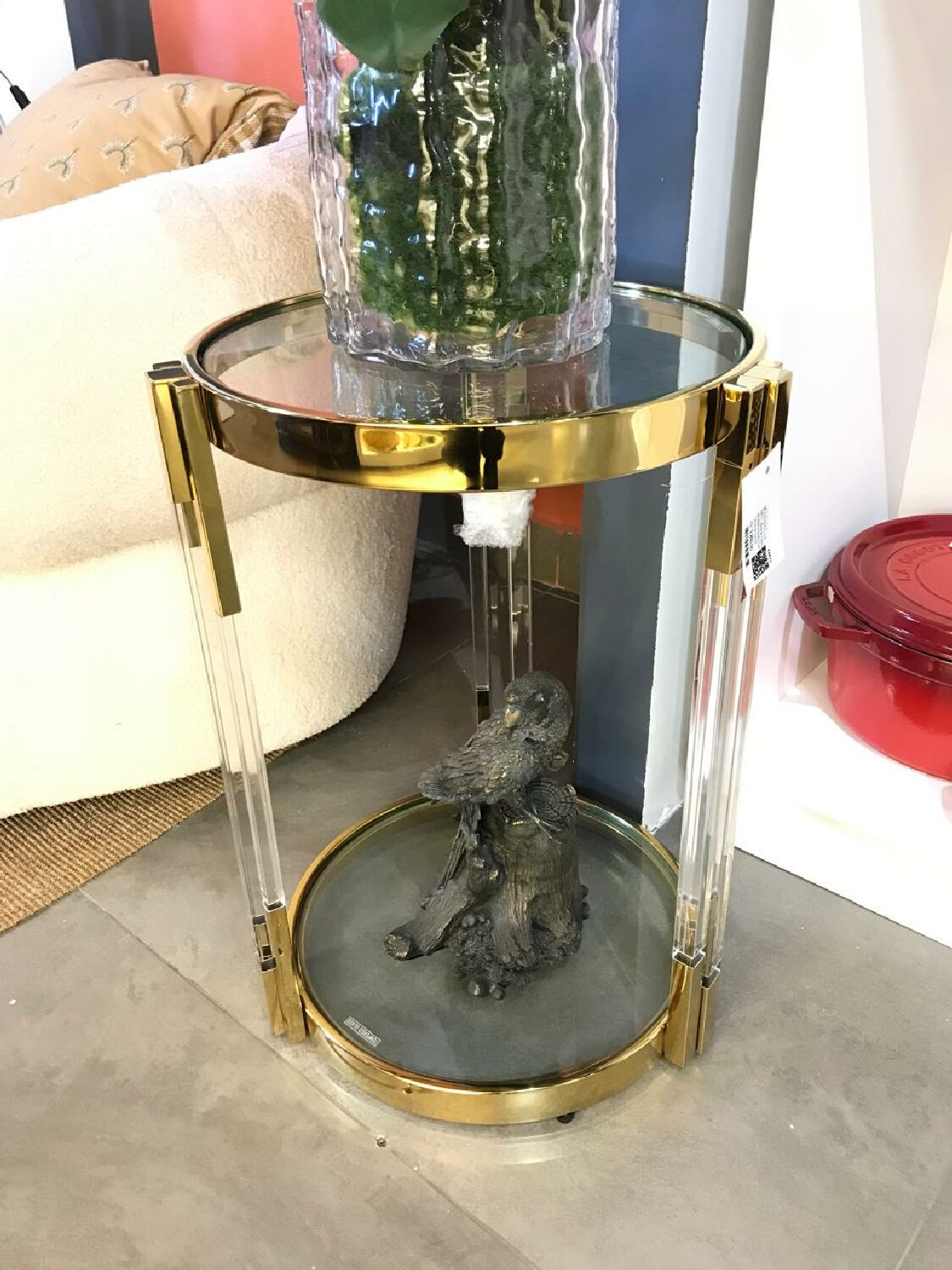 Mesa Lateral Redonda em Metal Dourado, Acrílico e Vidro