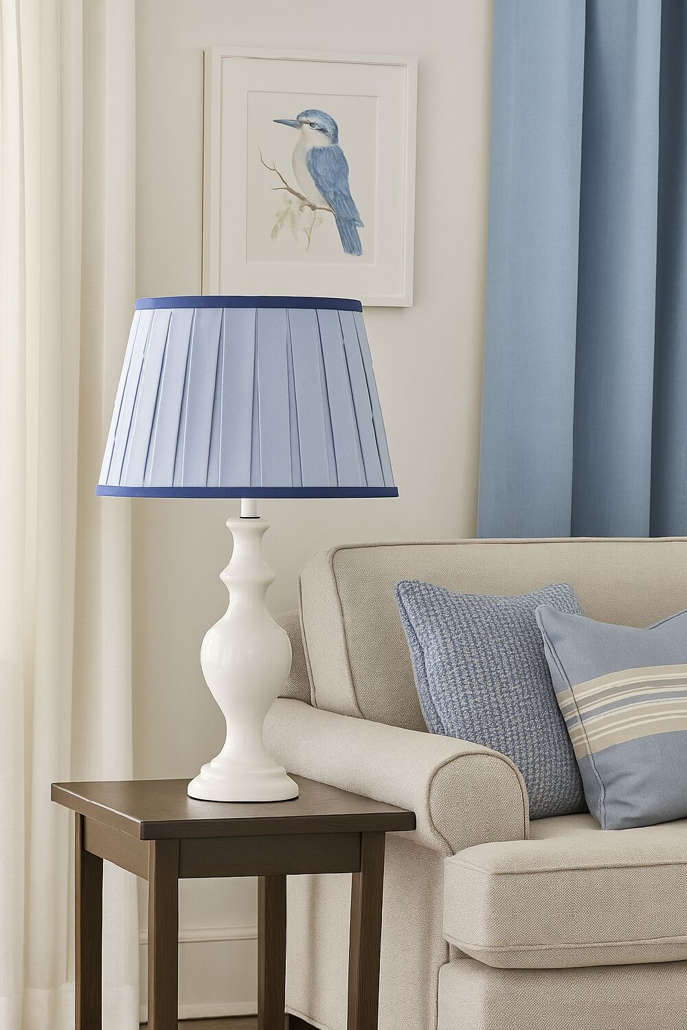 A Cúpula Pregueada Oxford vivo Marinho traz um toque sofisticado e artesanal à iluminação. Confeccionada em linho misto, apresenta acabamento com vivo marinho na parte superior e inferior, destacando seu design elegante e atemporal. Sua estrutura de ferro garante durabilidade, tornando-a uma escolha versátil para diversos tipos de luminárias.