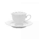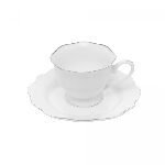 Conjunto 6 Xícaras de Chá de Porcelana com Pires Branco com Fio Prata Maldivas 180ml