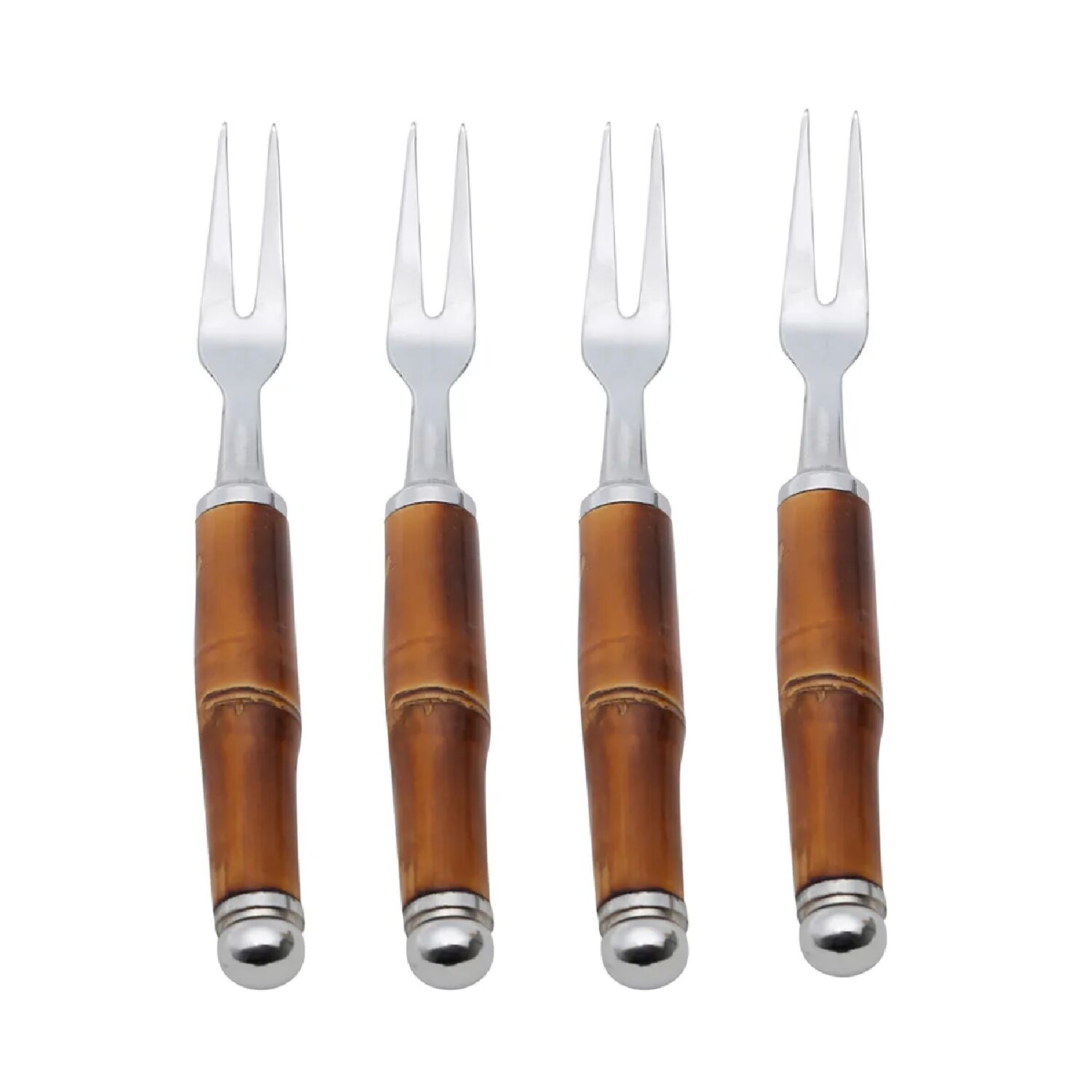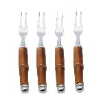 Conjunto 4 Garfos para Petisco de Aço Inox com Cabo de Bambu