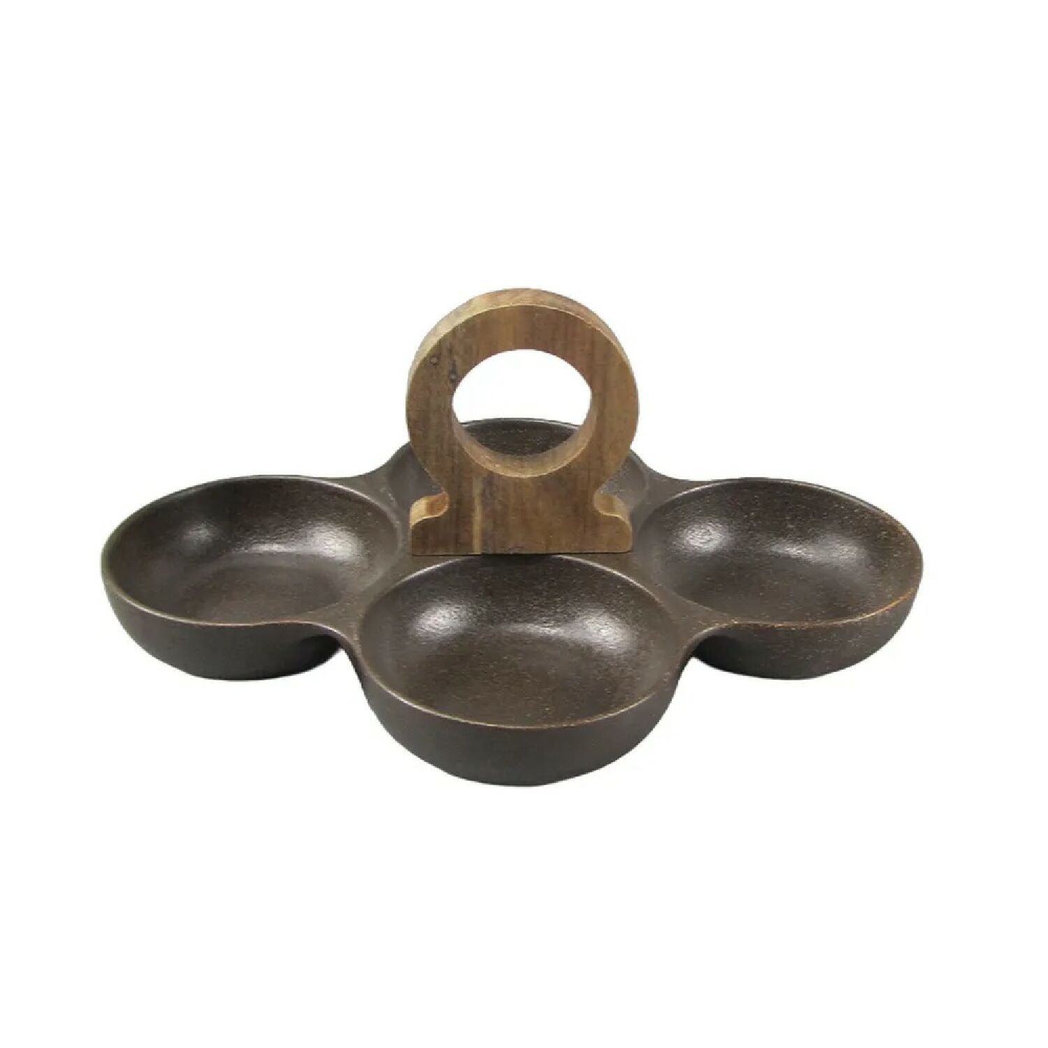 PETISQUEIRA EM CERÂMICA PRETA DETALHE EM MADEIRA
