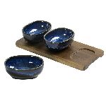 MADEIRA E CERÂMICA AZUL COM 3 BOWLS