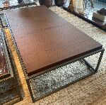 Esta mesa de centro retangular combina a sobriedade do design minimalista com o calor da madeira escura.