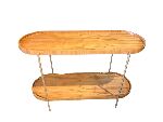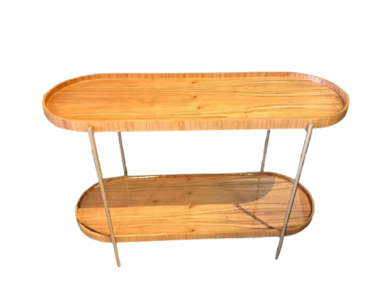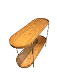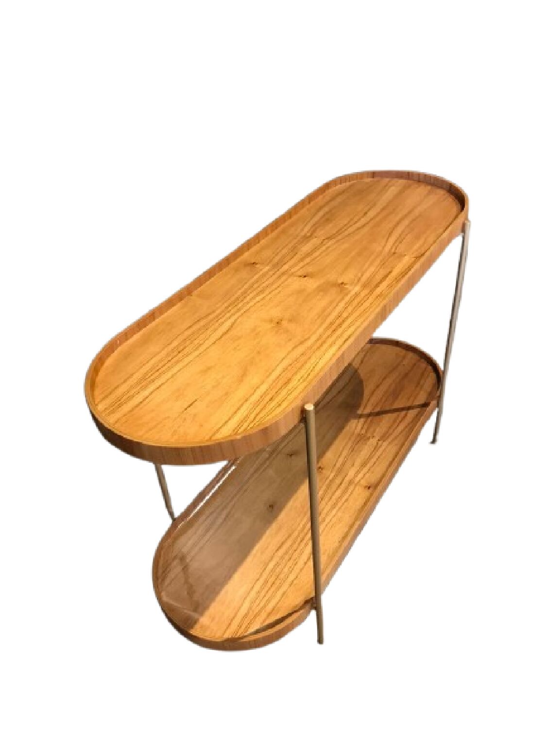 Conta com um segundo nível inferior, que amplia o espaço de apoio e organização, mantendo o ambiente sempre funcional. A estrutura metálica fina e resistente garante estabilidade e adiciona um toque moderno e leve ao visual da peça, criando um contraste harmonioso com o calor da madeira.
