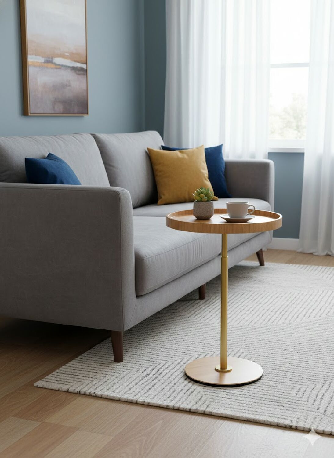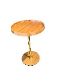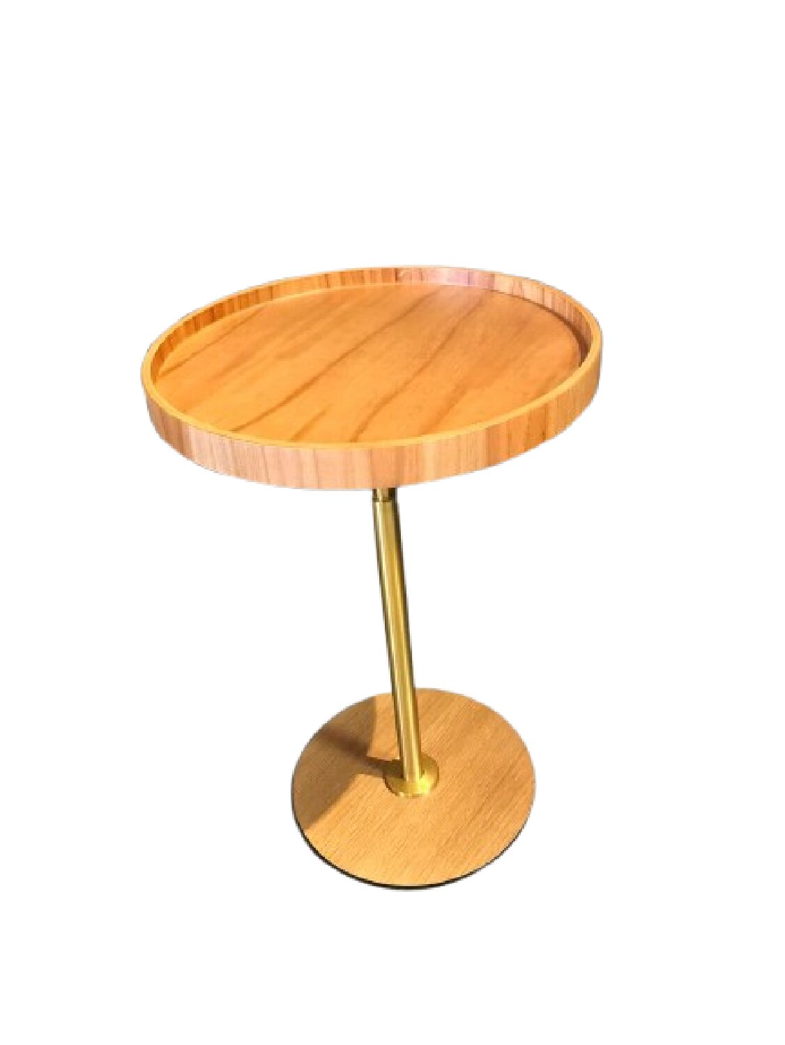 Elegante e funcional, esta mesa lateral é a escolha ideal para complementar ambientes com charme e sofisticação. Possui tampo redondo em madeira com acabamento natural e borda elevada, que além de valorizar o design, ajuda a manter objetos apoiados com segurança. Sua estrutura conta com haste central e base circular em metal com acabamento dourado, garantindo estabilidade e um toque contemporâneo ao ambiente.