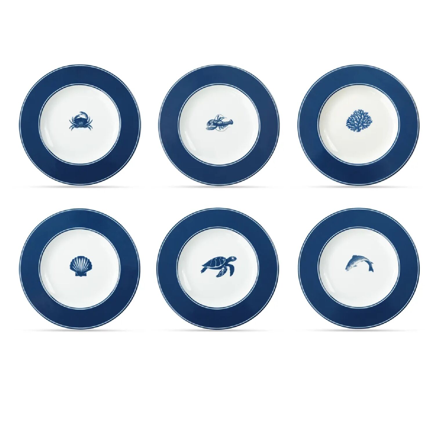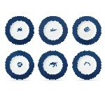 PRATO SOBREMESA MAR PORCELANA AZUL BRANCO 21X21X2CM JG C/ 6 PC