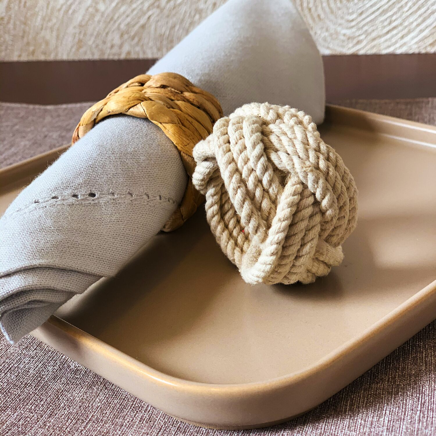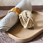O conjunto de 4 aneis para guardanapo é ideal para abrigar guardanapos ele é de fibra natural na cor bege.