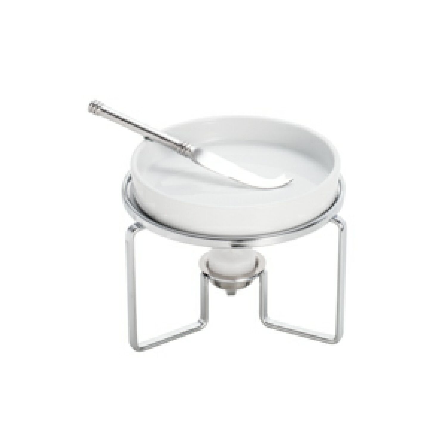 O rechaud para queijo brie 14cm, na cor dourado com faca, é ideal para manter a temperatura do queijo brie, além de ser muito sofisticado.