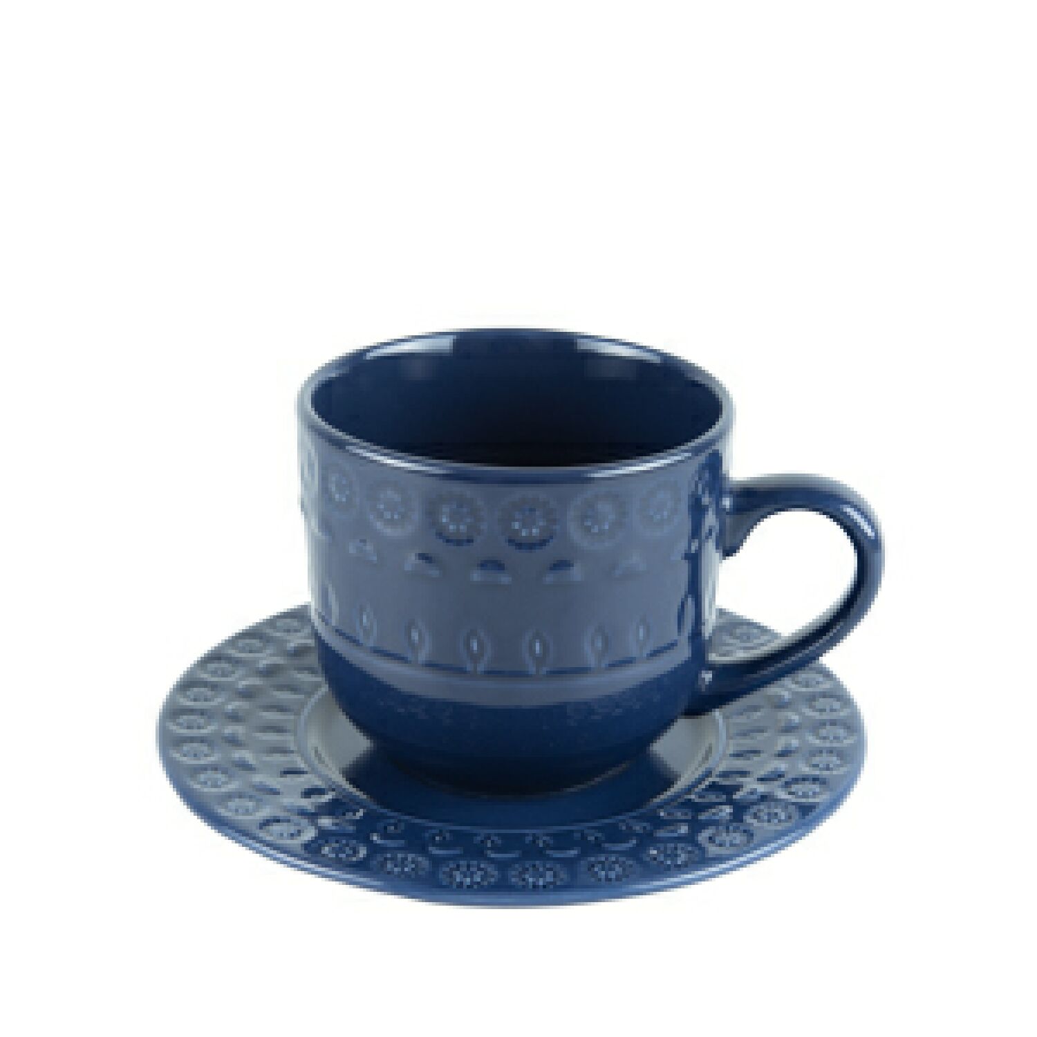 O conjunto de xícaras de chá porcelana com pires 250mL grace, na cor azul, é ideal para servir chá e deixar sua mesa mais sofisticada.