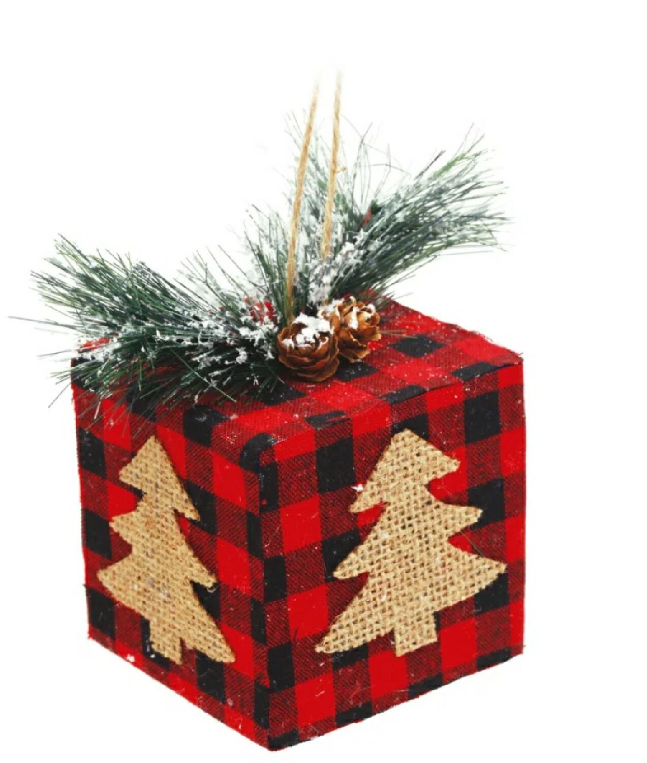 O enfeite para pendurar presente com pinheiro xadrez, nas cores vermelho e preto, é ideal para decorar o ambiente e compor sua árvore, levando o clima natalino para dentro de sua casa.